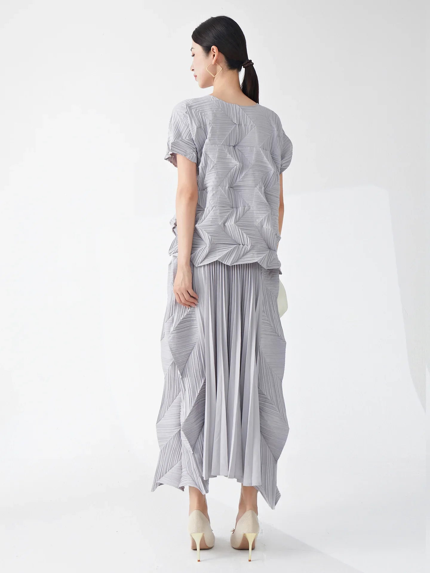Ikebana Pleated Geometric Top and Skirt