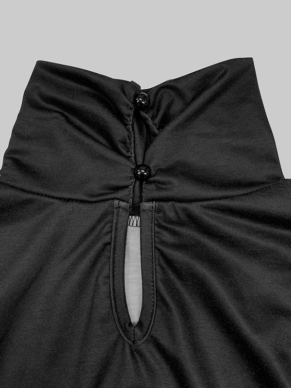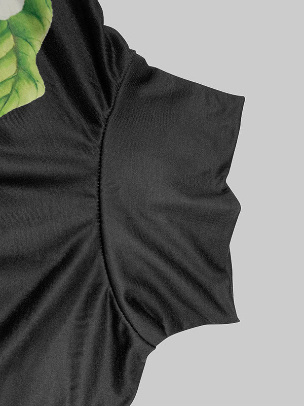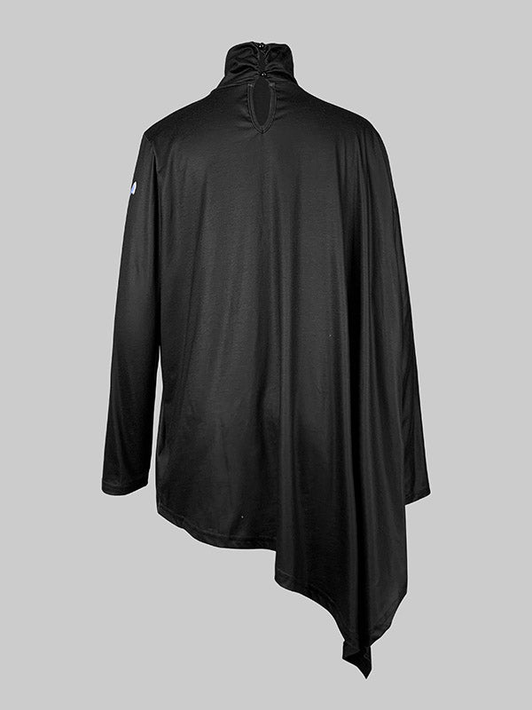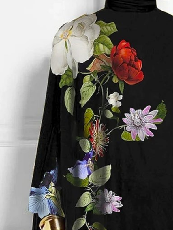 Irregularity Long Sleeves Flower Print High Neck T-Shirts Tops
