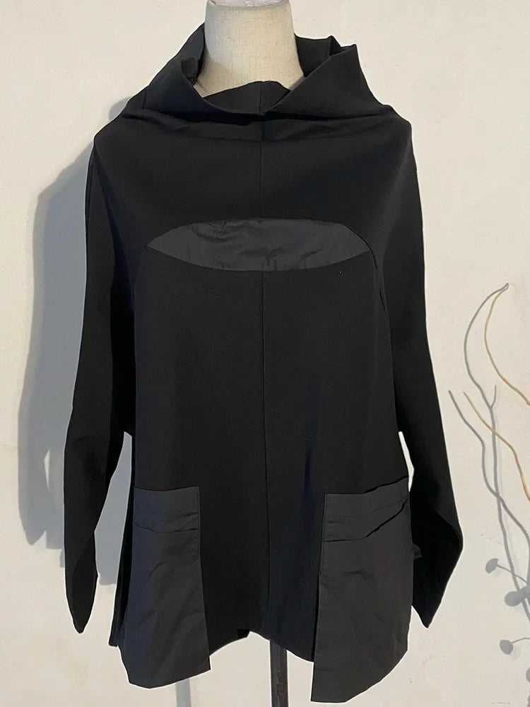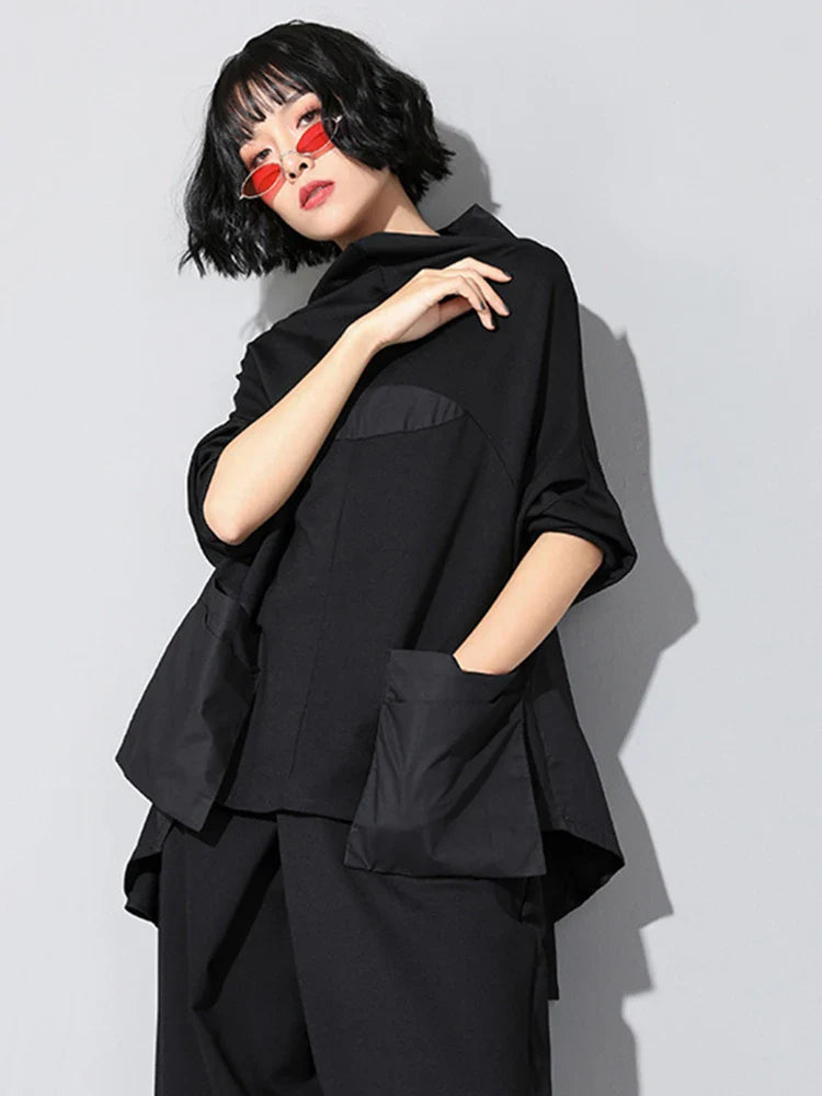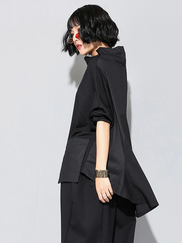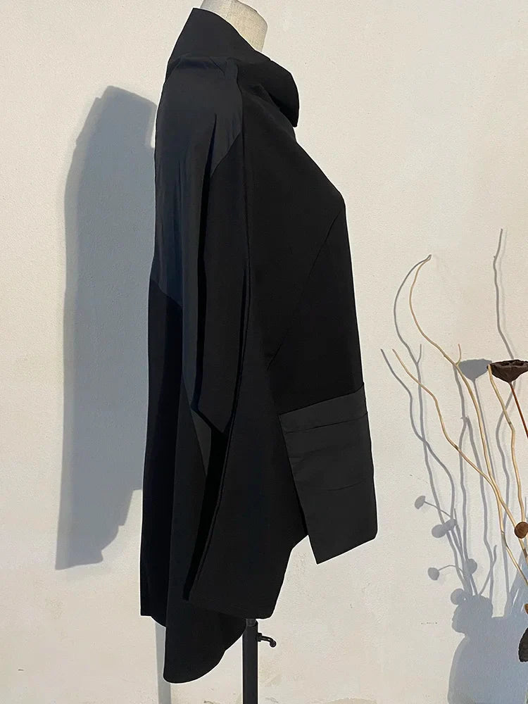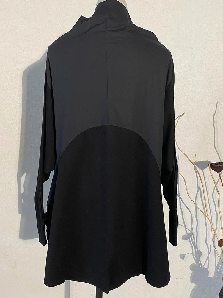 A perfect blend of luxury and comfort. this high-neck tunic shirt takes inspiration from Japanese couture. The oversized fit and sleek design make it versatile for both casual and more polished looks. while the front pockets add practicality without compromising on style.