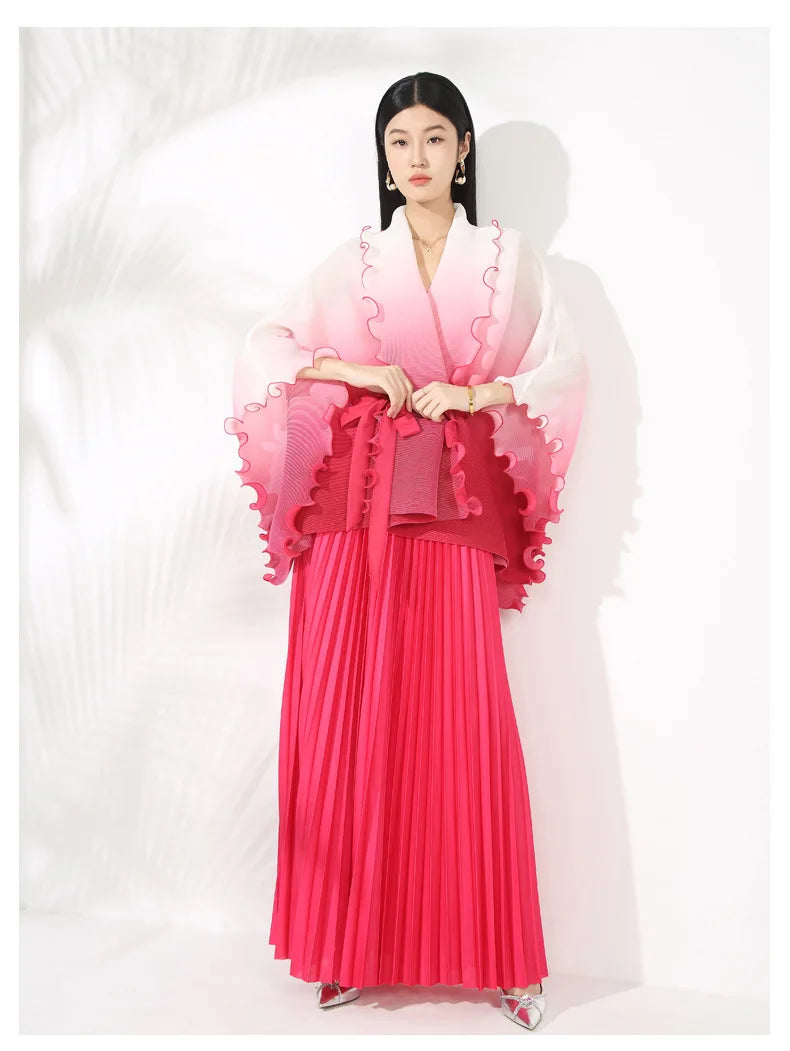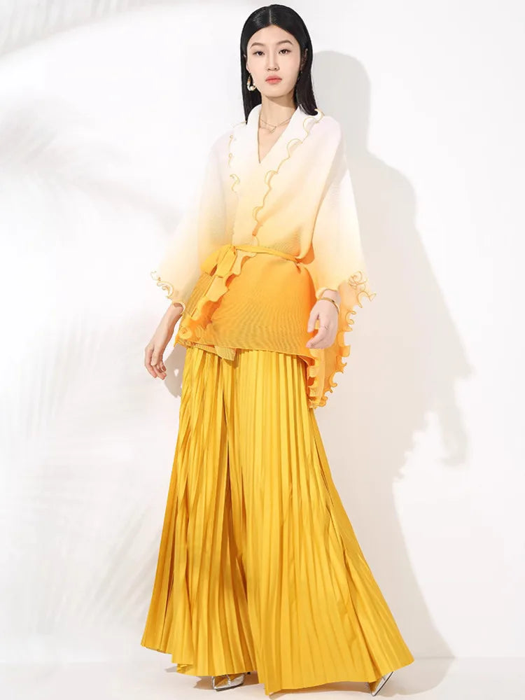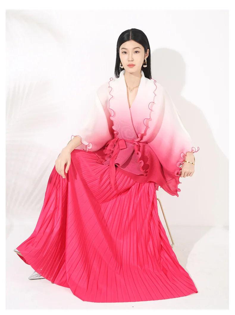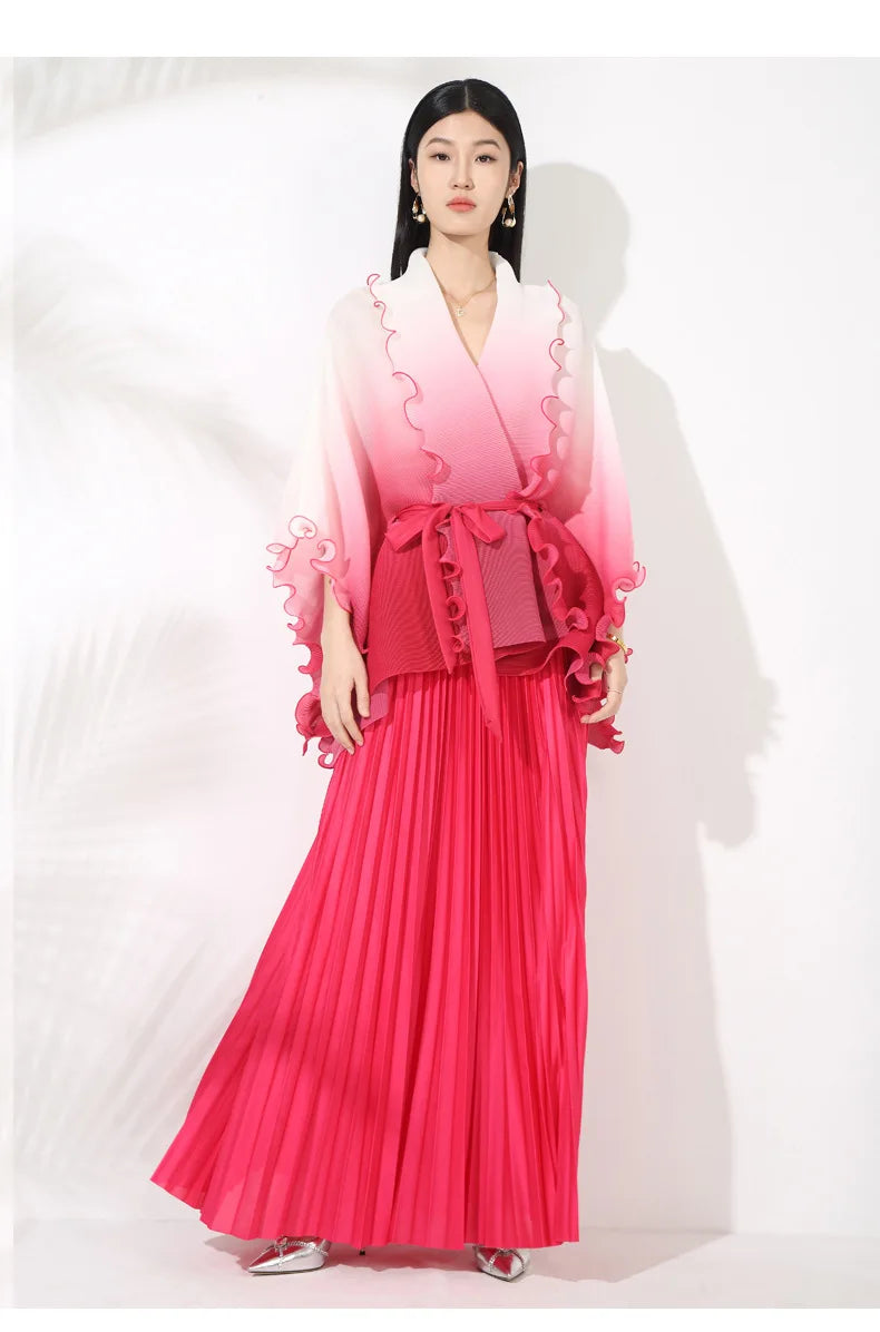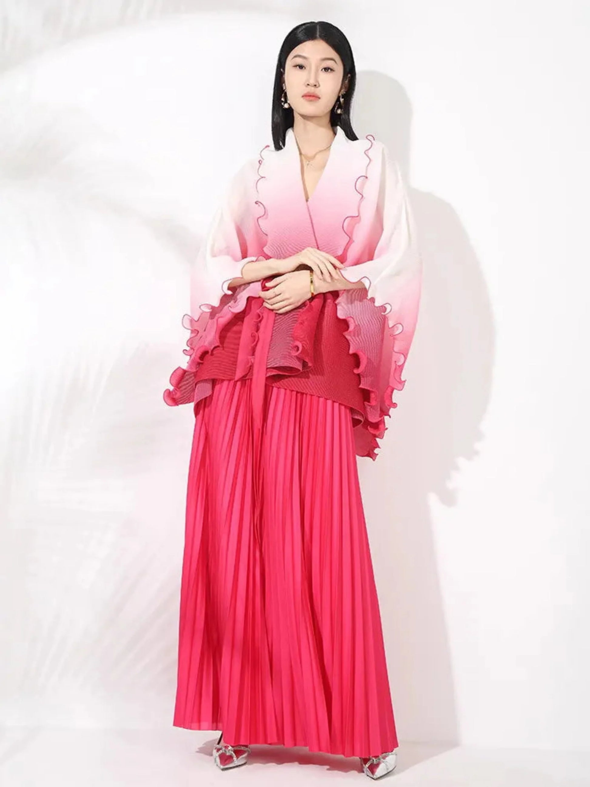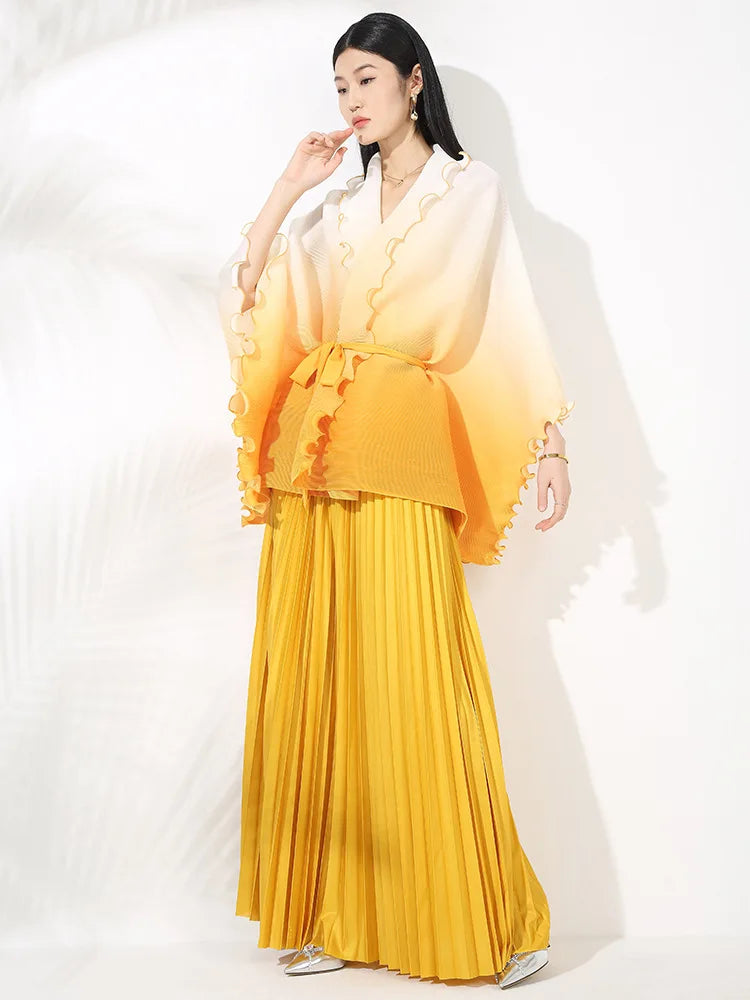 Kimono Sleeve Pleated Top & Plisse Midi Skirt