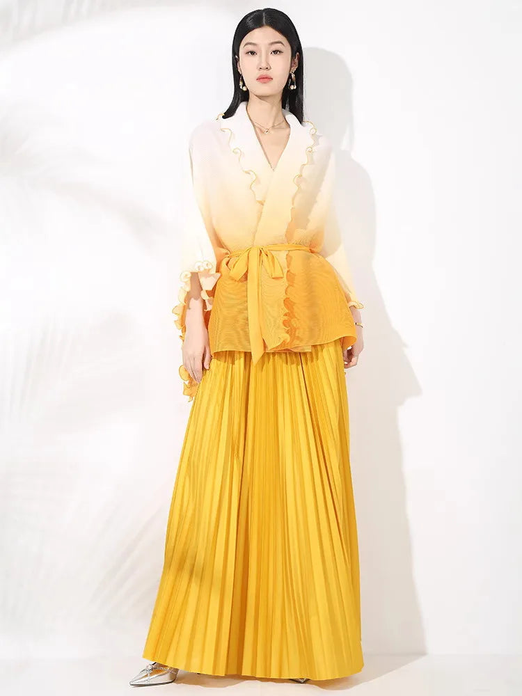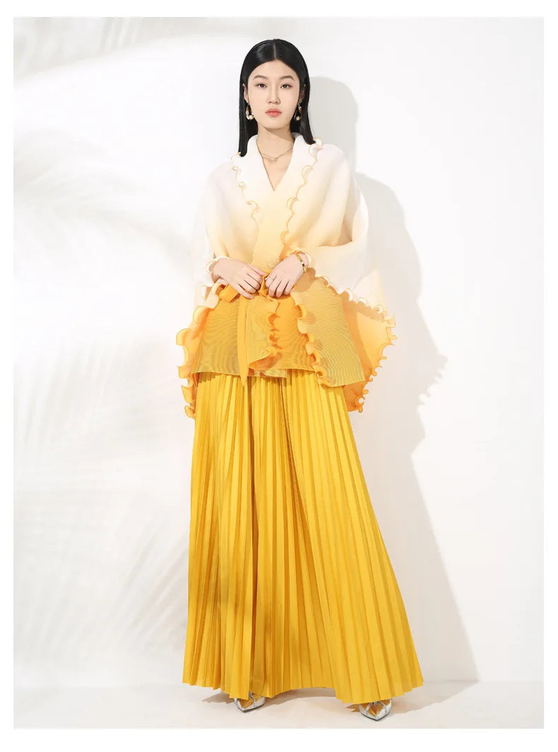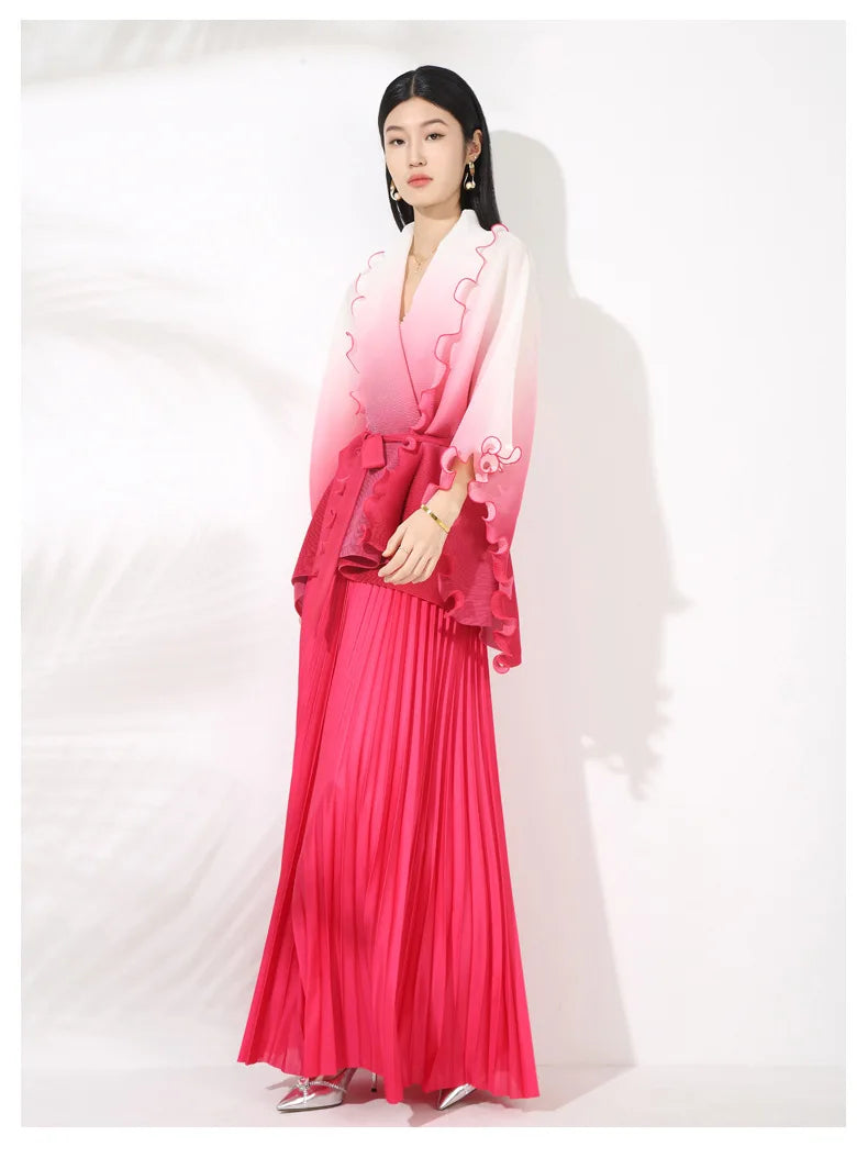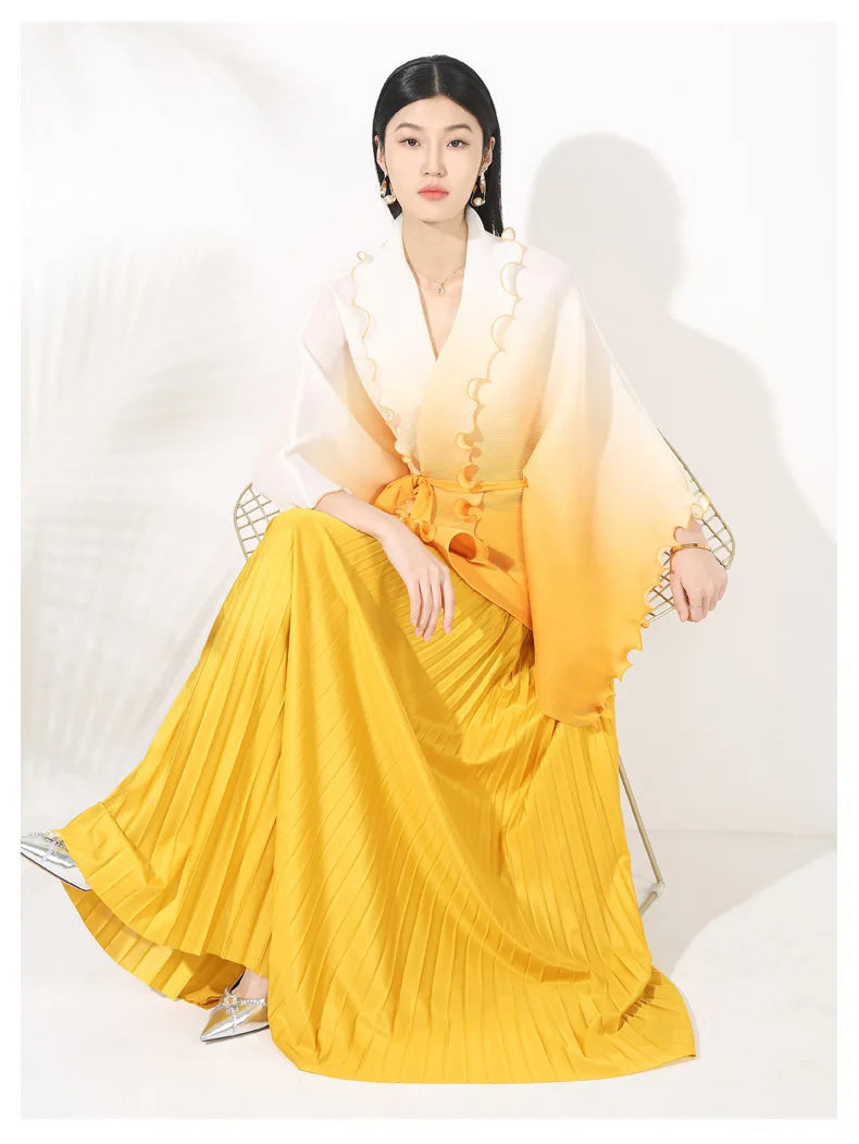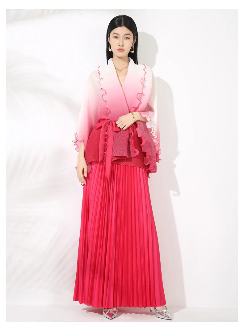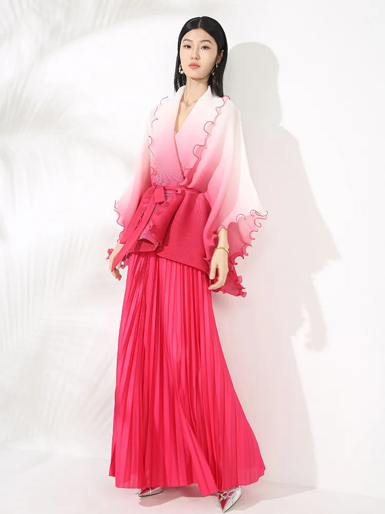 Kimono Sleeve Pleated Top & Plisse Midi Skirt