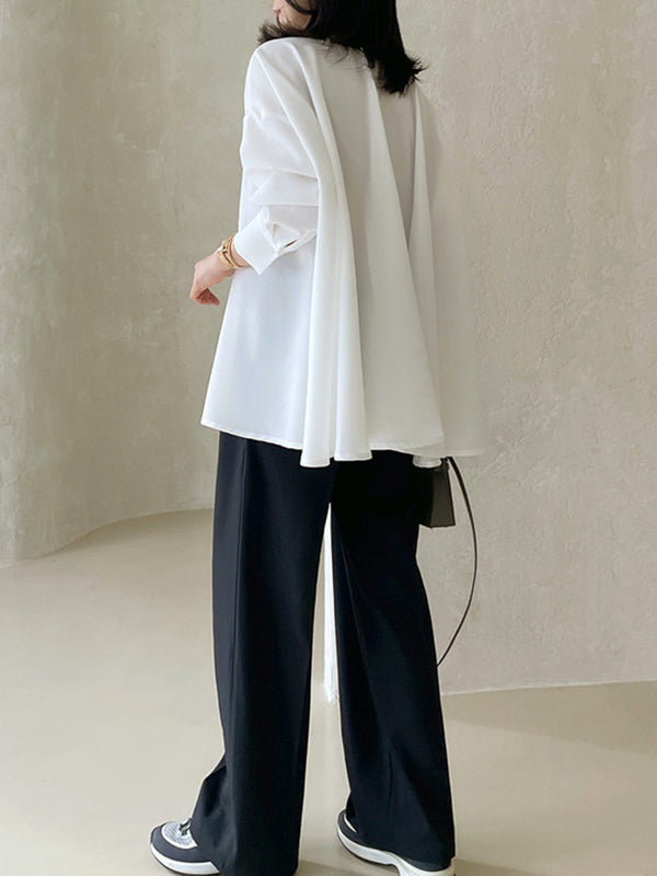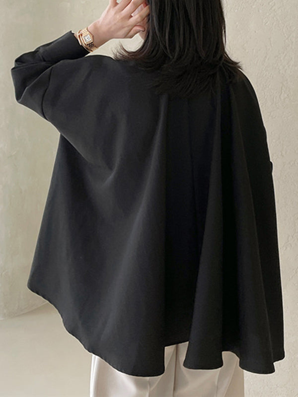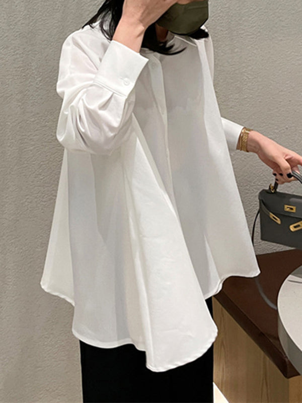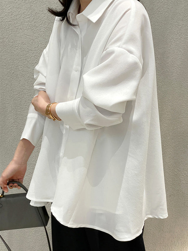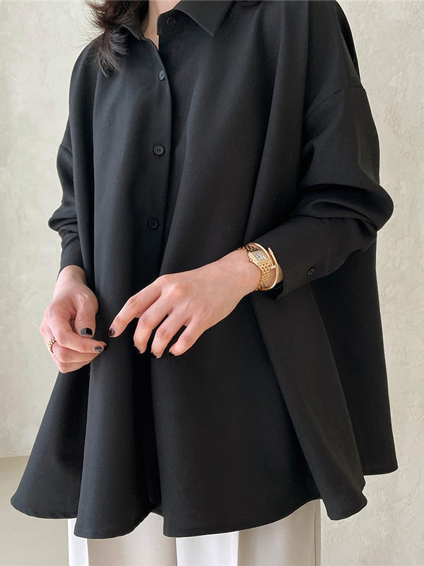 Long Sleeves Loose Buttoned Solid Color Lapel Blouses&Shirts Tops