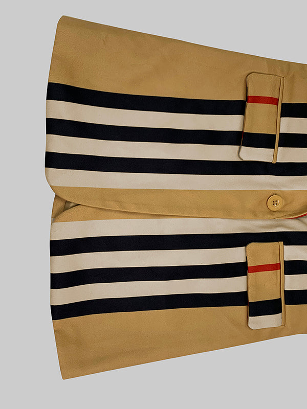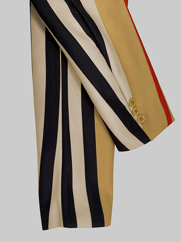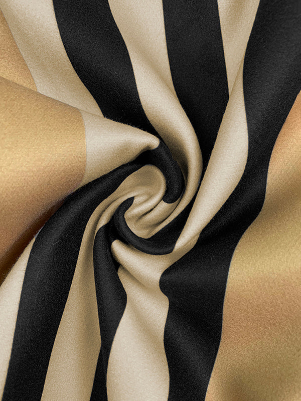 Long Sleeves Loose Buttoned Split-Joint Striped Stand Collar Woolen Coat
