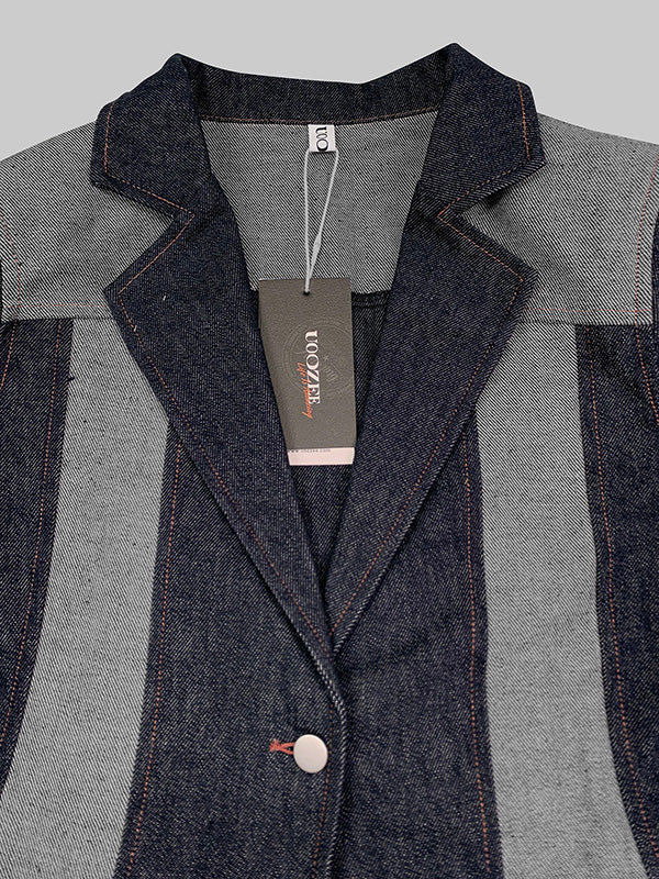 Long Sleeves Loose Contrast Color Split-Joint Deep V-Neck Jackets Outerwear