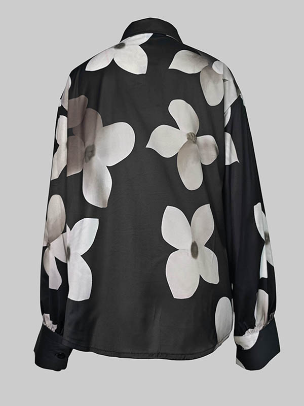 Long Sleeves Loose Floral Printed Lapel Blouses
