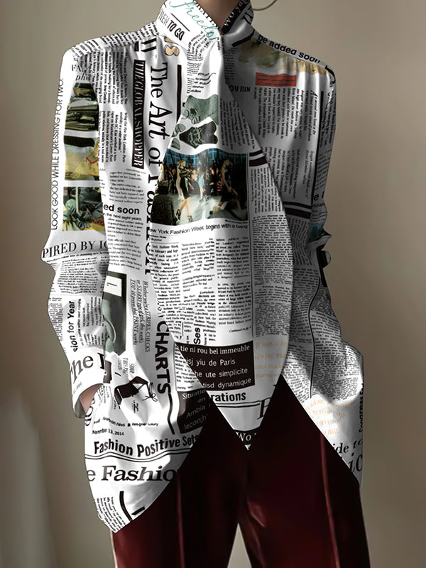 Long Sleeves Loose Letter Print Stand Collar Blouses&Shirts Tops