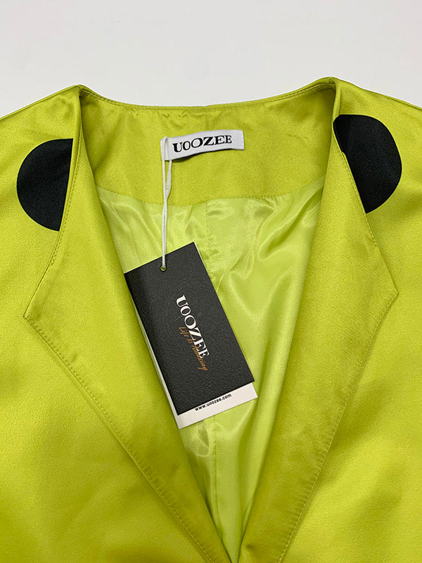 Long Sleeves Loose Pleated Polka-Dot Split-Joint Round-Neck Outerwear