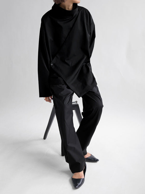 Long Sleeves Loose Solid Color High Neck T-Shirts Tops