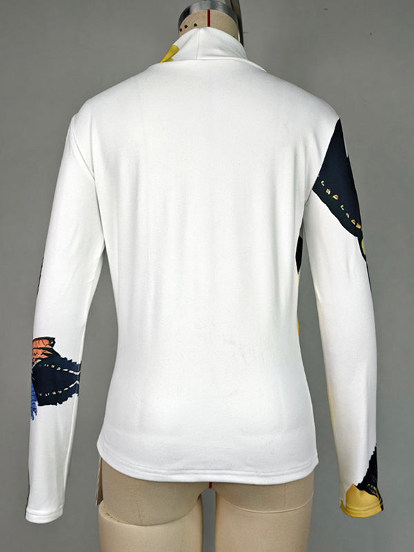 Long Sleeves Skinny Flower Print High Neck T-Shirts Tops