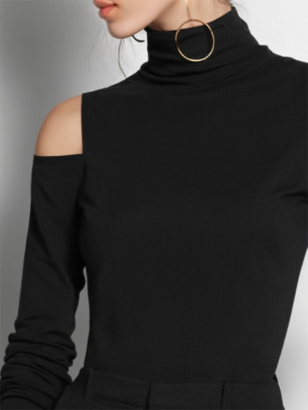 Long Sleeves Skinny Hollow Solid Color Cold Shoulder T-Shirts Tops