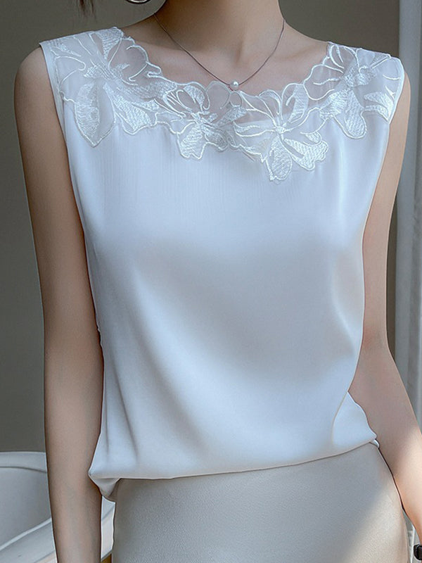 Loose Plus Size See-Through Solid Color Split-Joint Round-Neck Vest Top