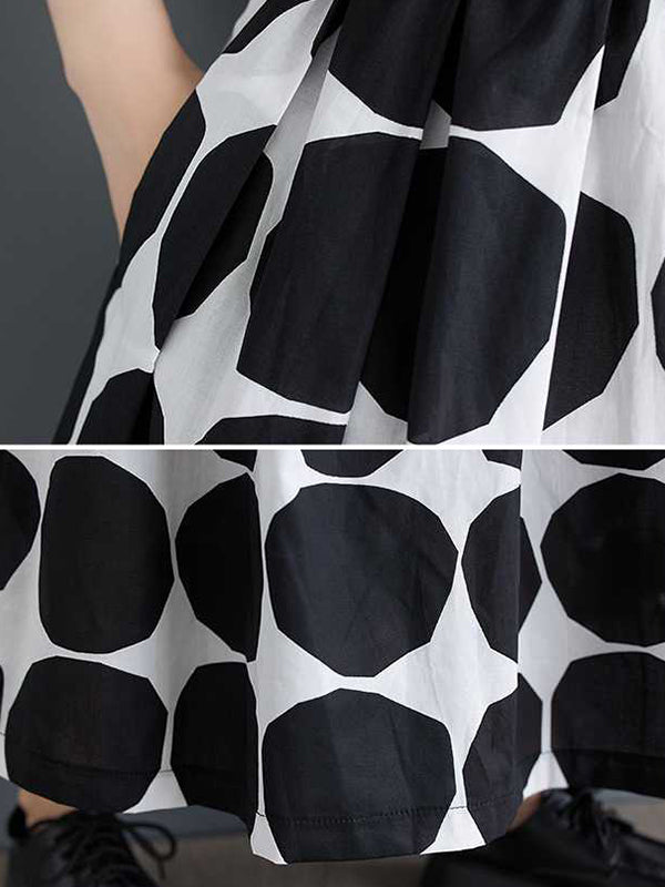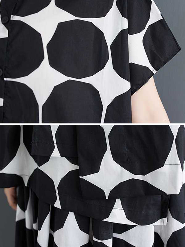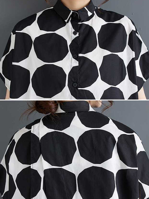 Loose Short Sleeves Buttoned Polka-Dot Lapel Blouse Tops Skirts Bottoms Two Pieces Set
