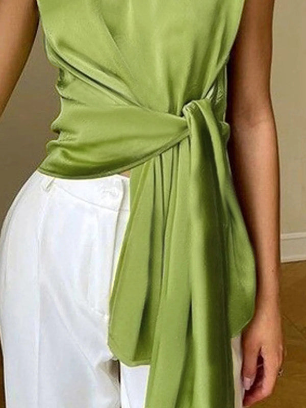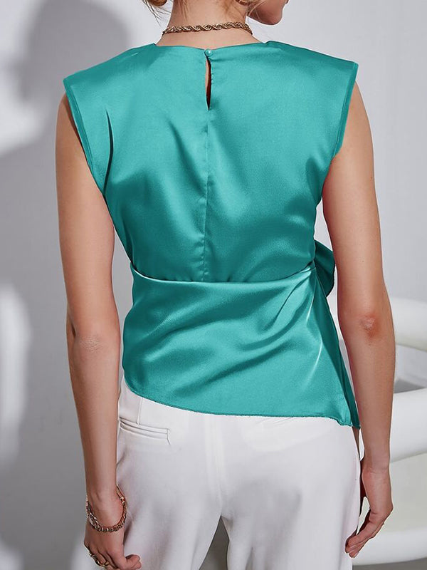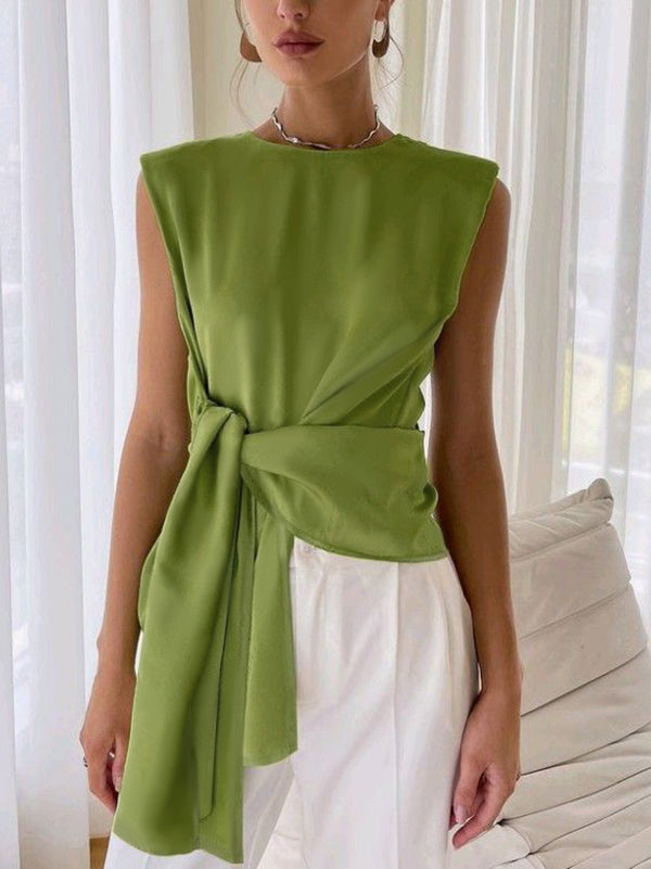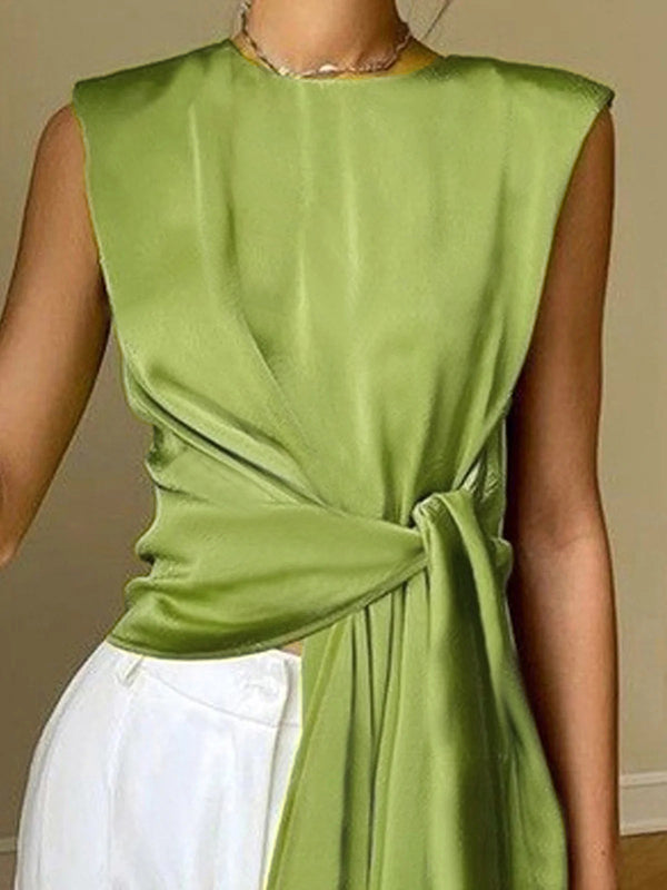 Loose Sleeveless Asymmetric Knot Solid Color Round-Neck Vest Top