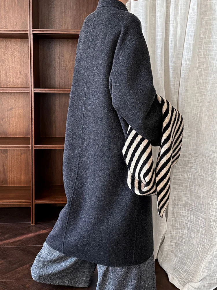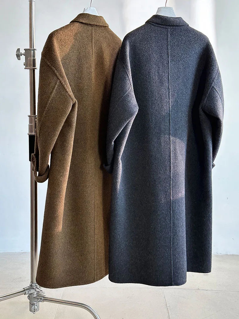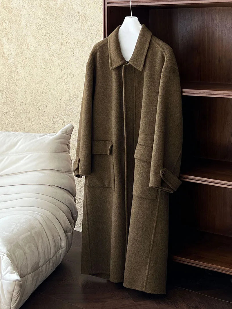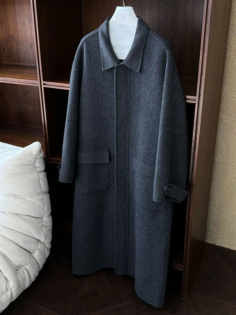 Luxe Oversized Cocoon Wool Zip-Up Long Coat