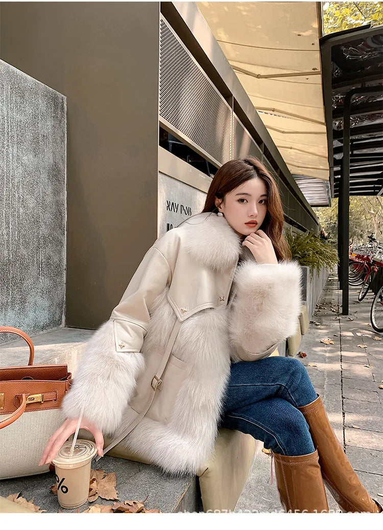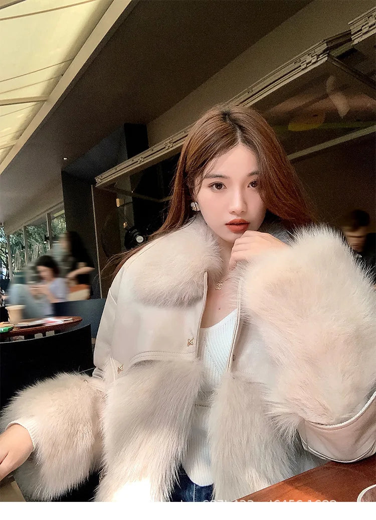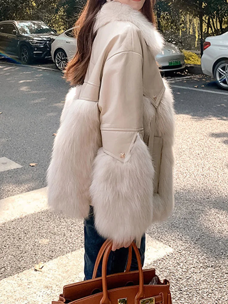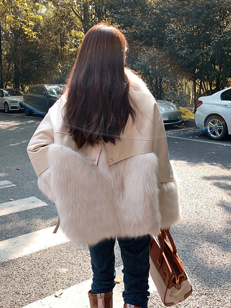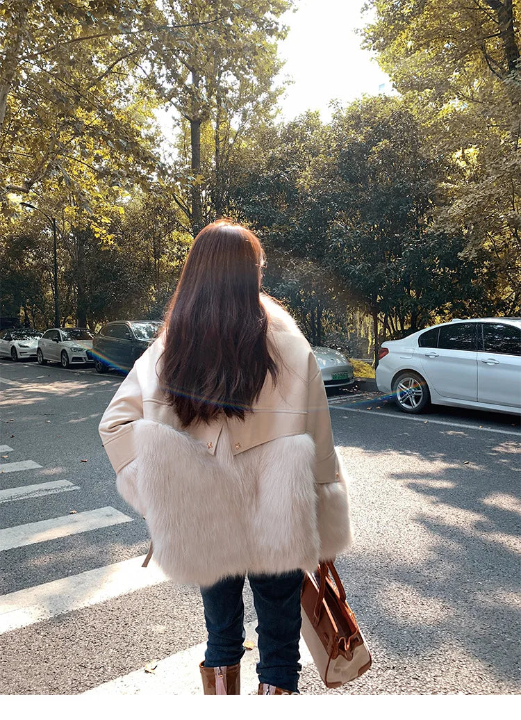 Stay warm and stylish this winter with this vegan leather jacket featuring a cozy faux fur lining.