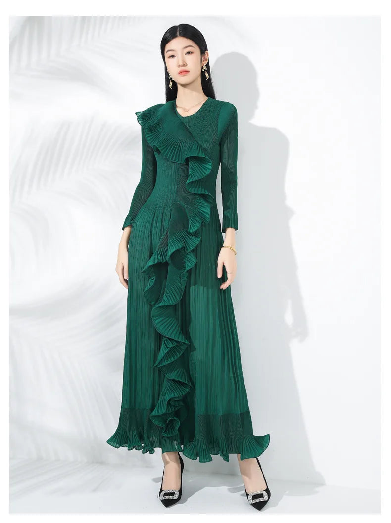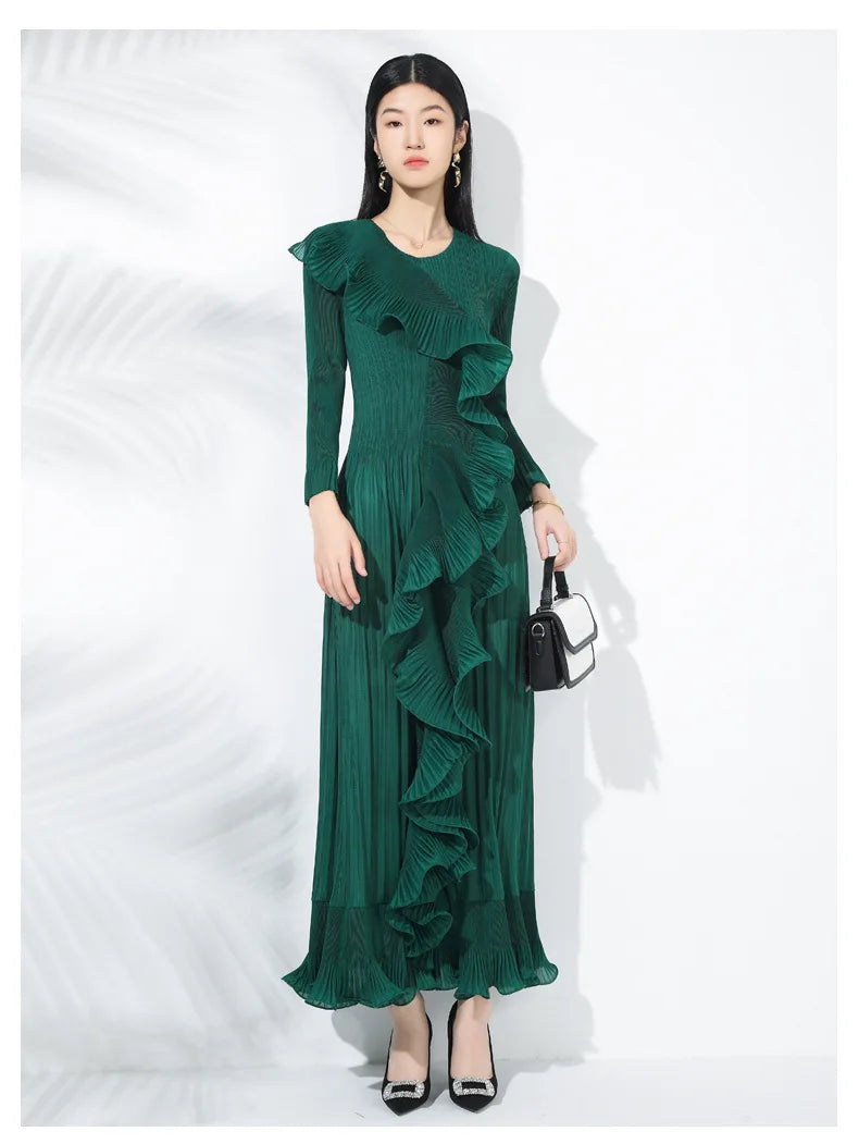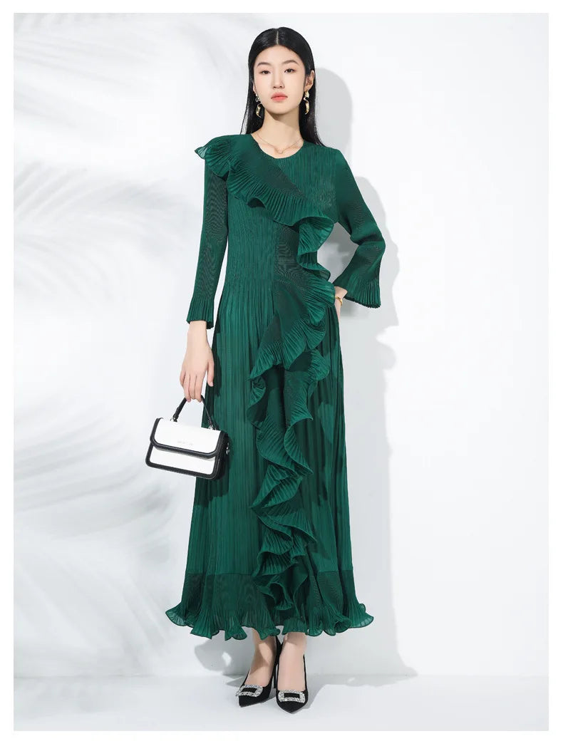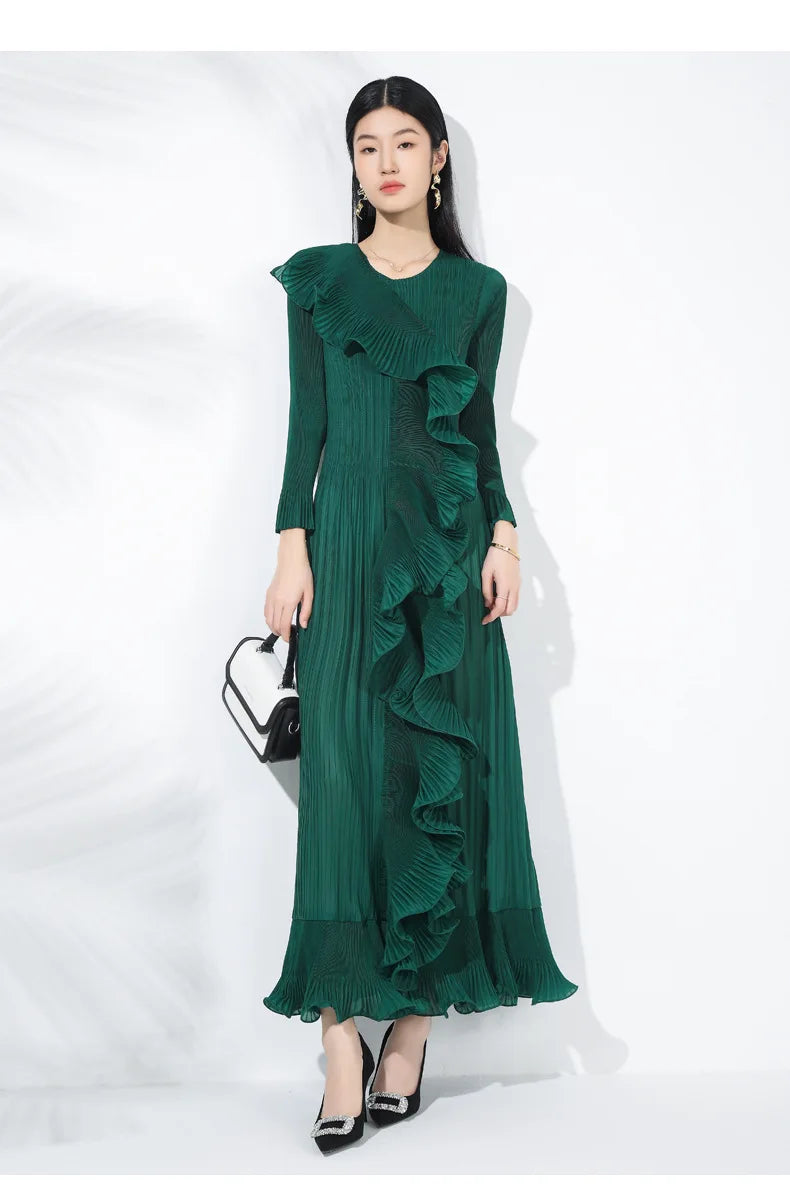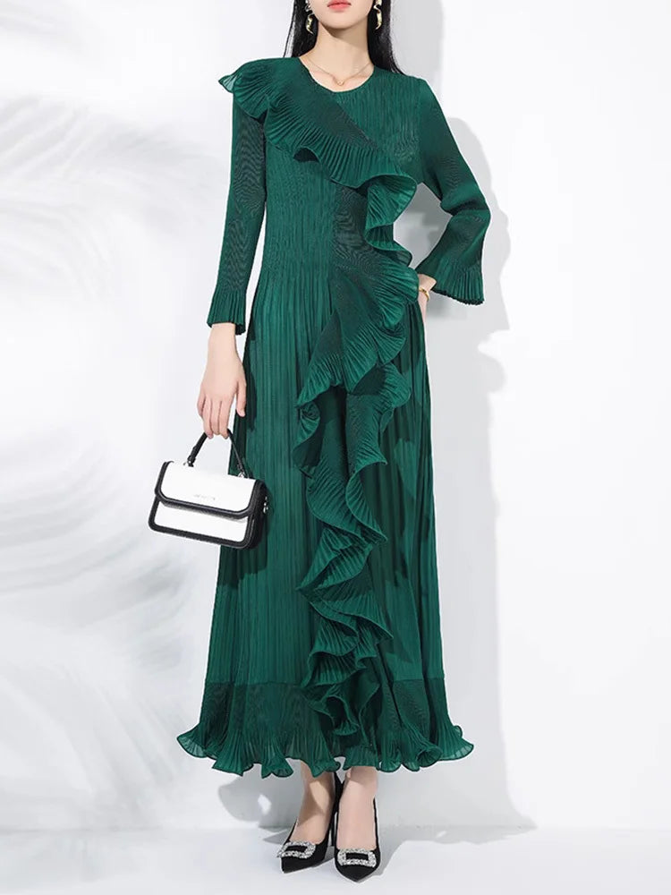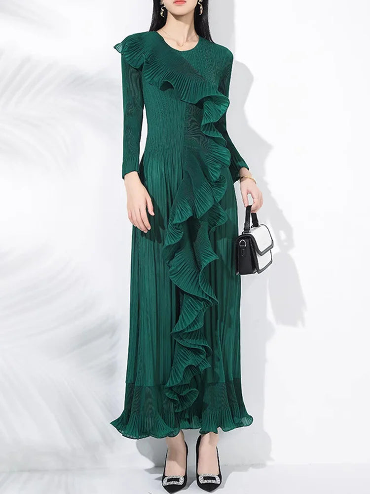Luxurious Plissé Pleated 3D Ruffles Midi Dress