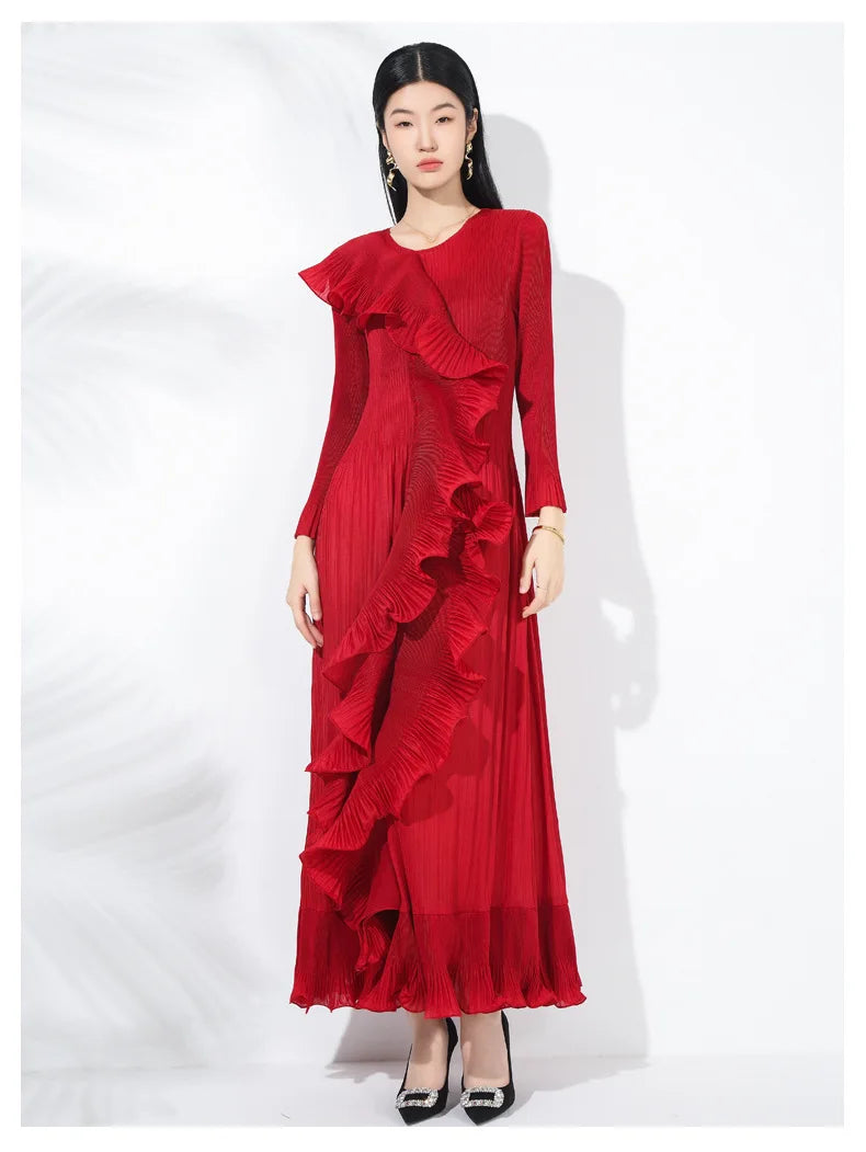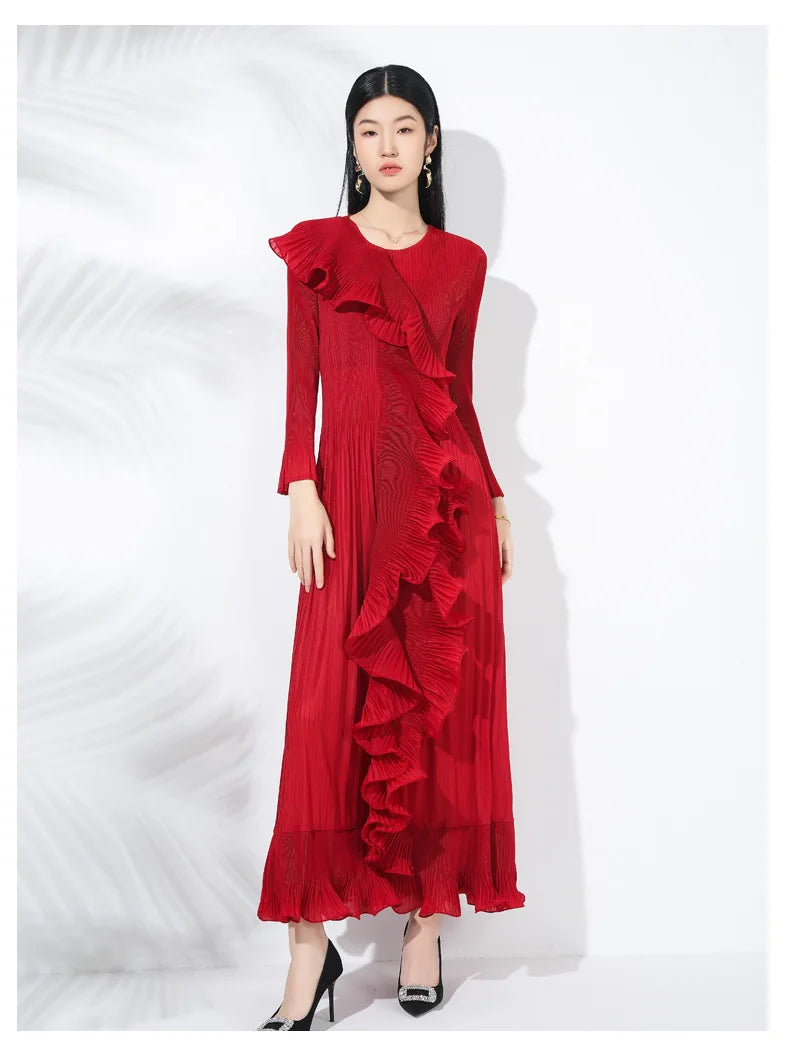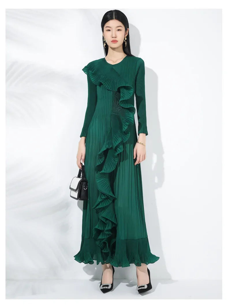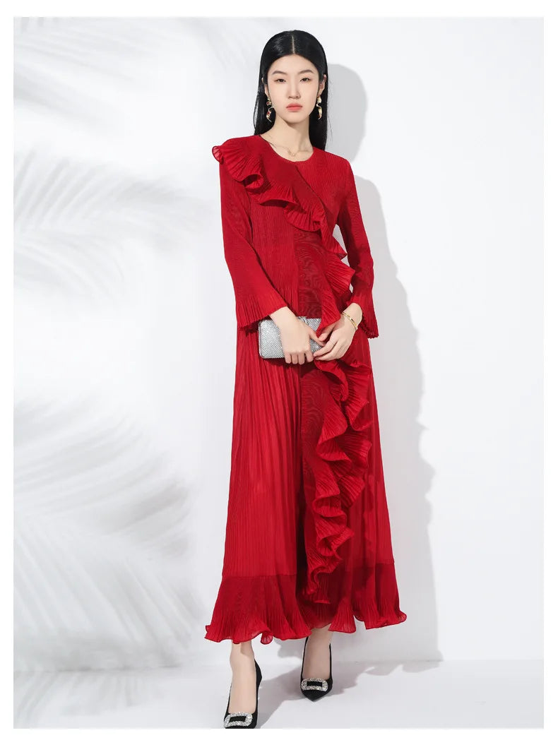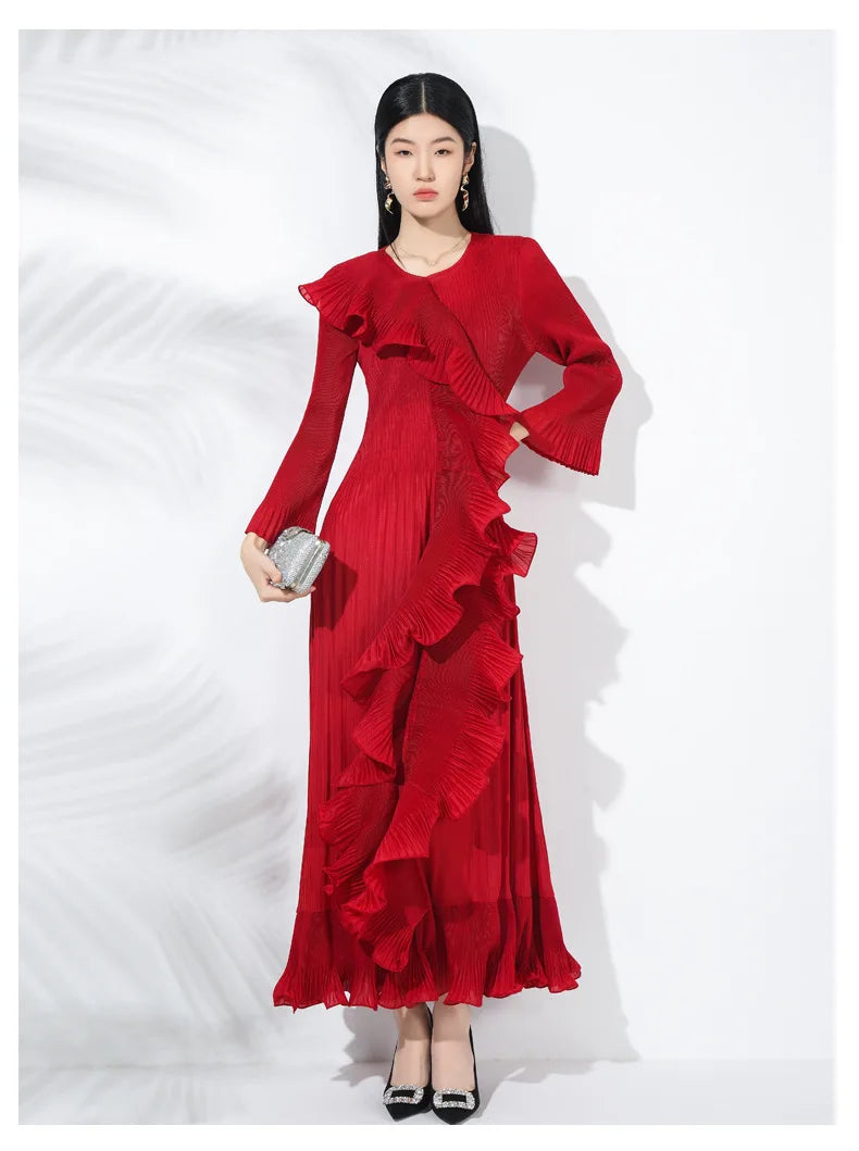 Luxurious Plissé Pleated 3D Ruffles Midi Dress