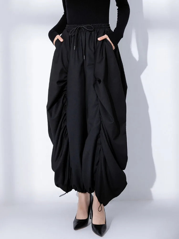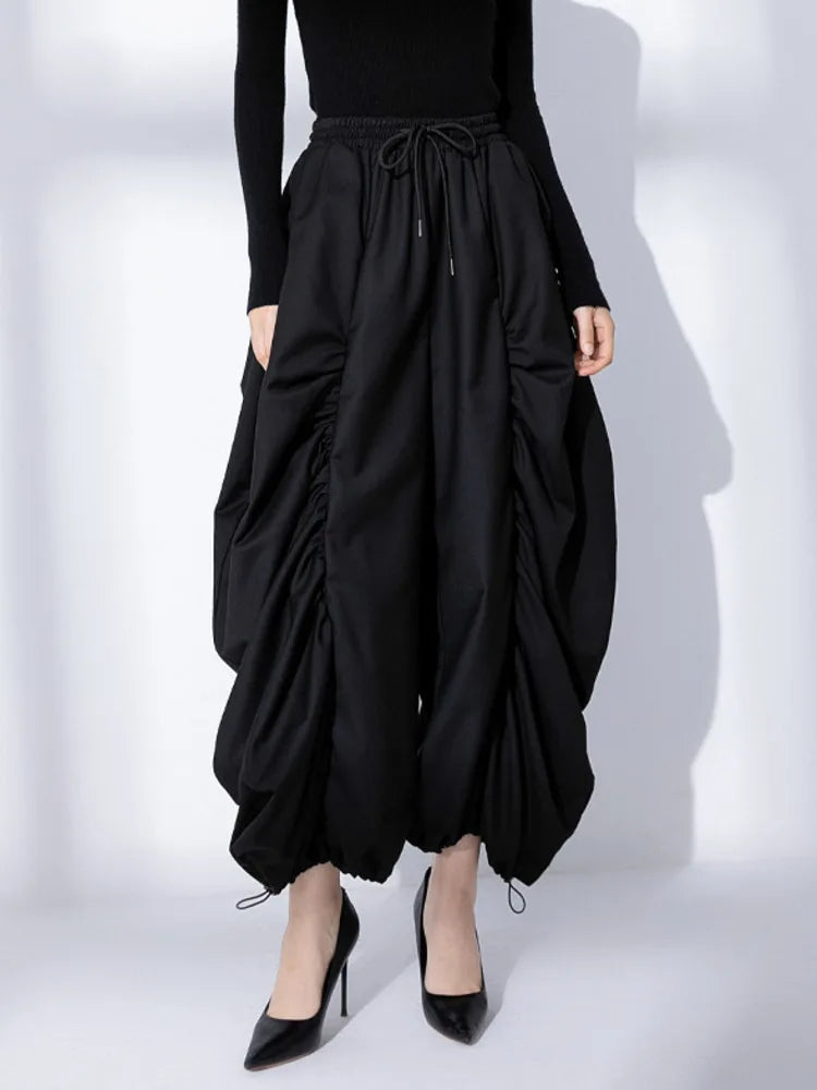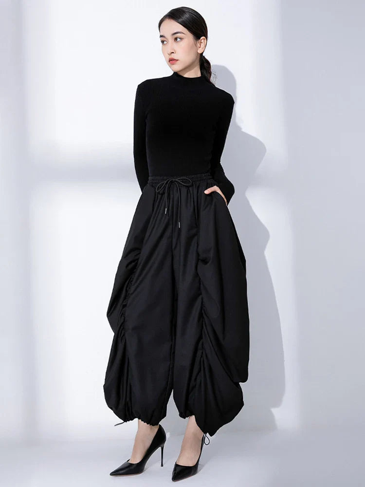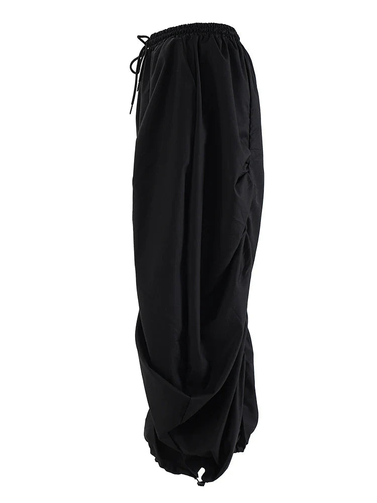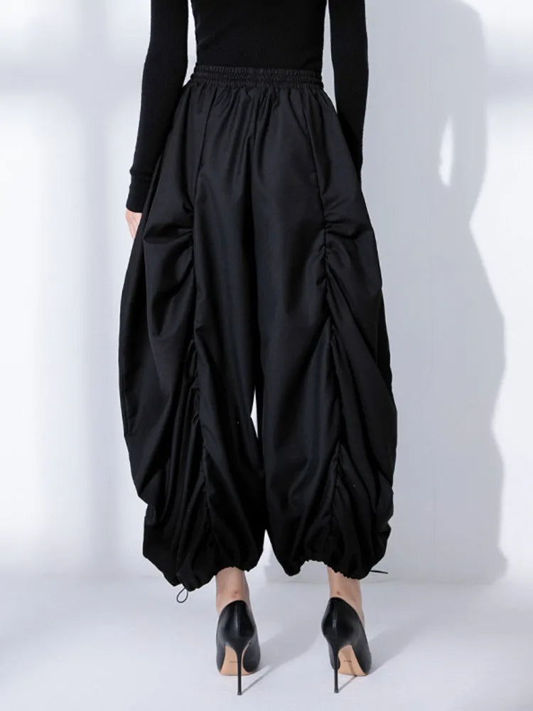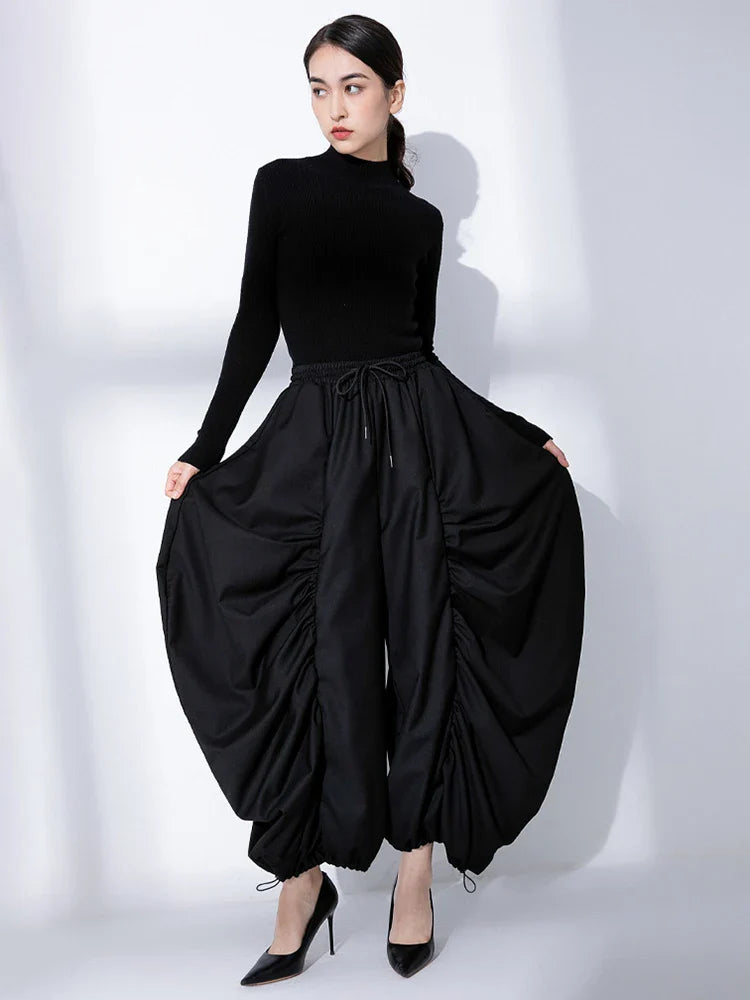 Embrace an ultra-oversized fit with these Japanese-inspired harem balloon pants. The ruching detail creates a unique. relaxed silhouette that's both comfortable and chic.