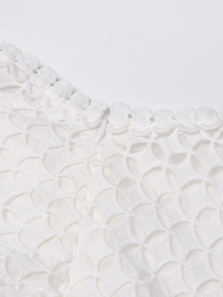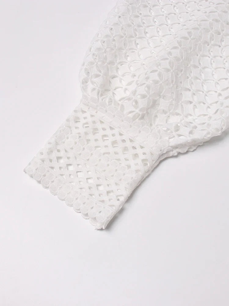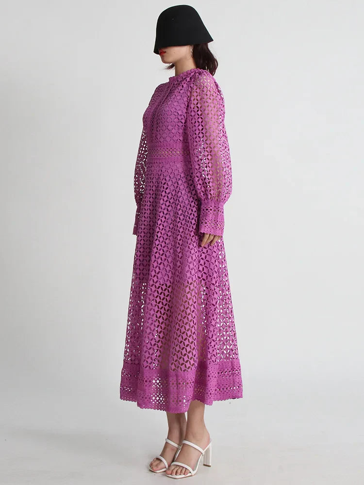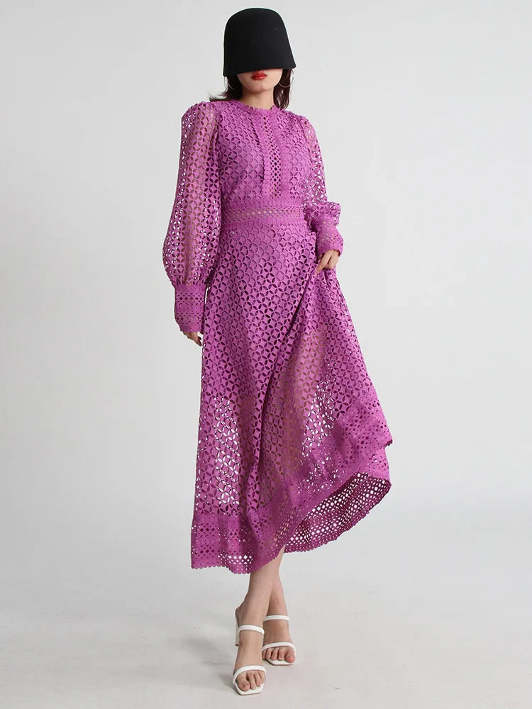 This exquisite lace midi dress blends elegance with modern sophistication. Featuring long balloon sleeves and intricate cut-out lace detailing. it's a timeless piece for any stylish wardrobe. Perfect for special occasions or a refined everyday look.