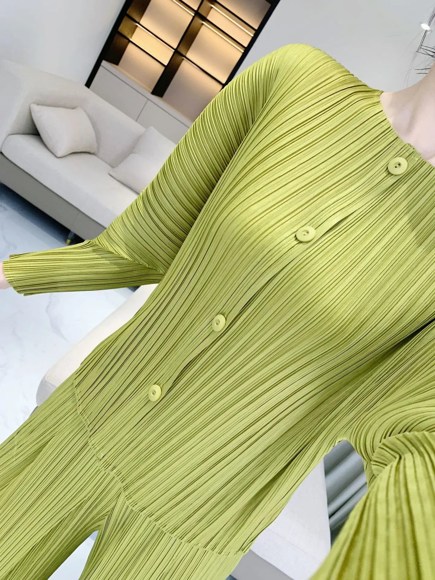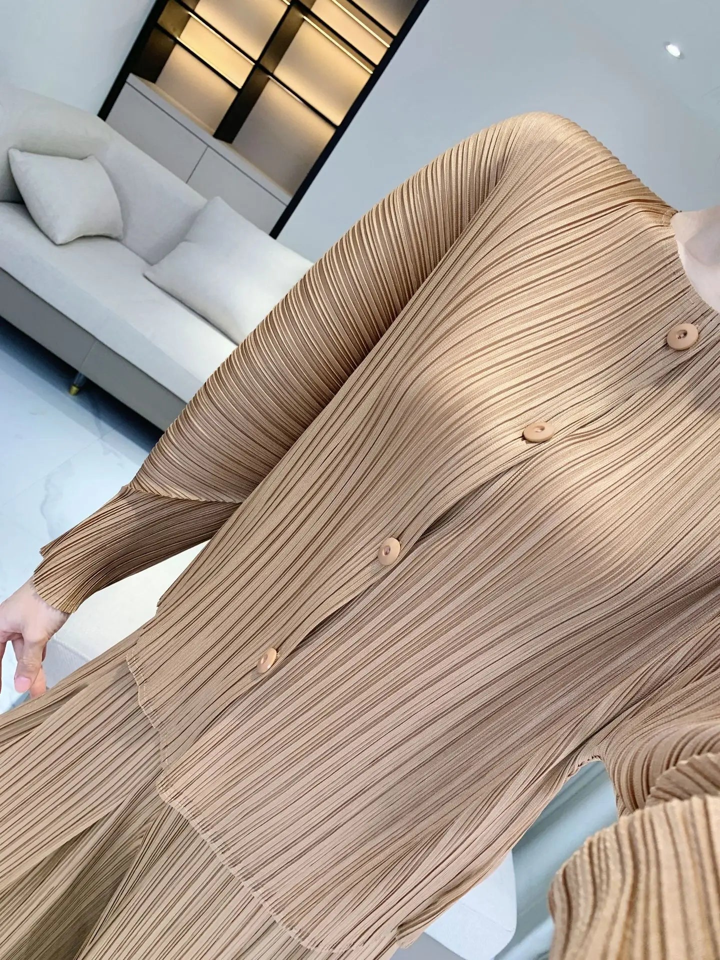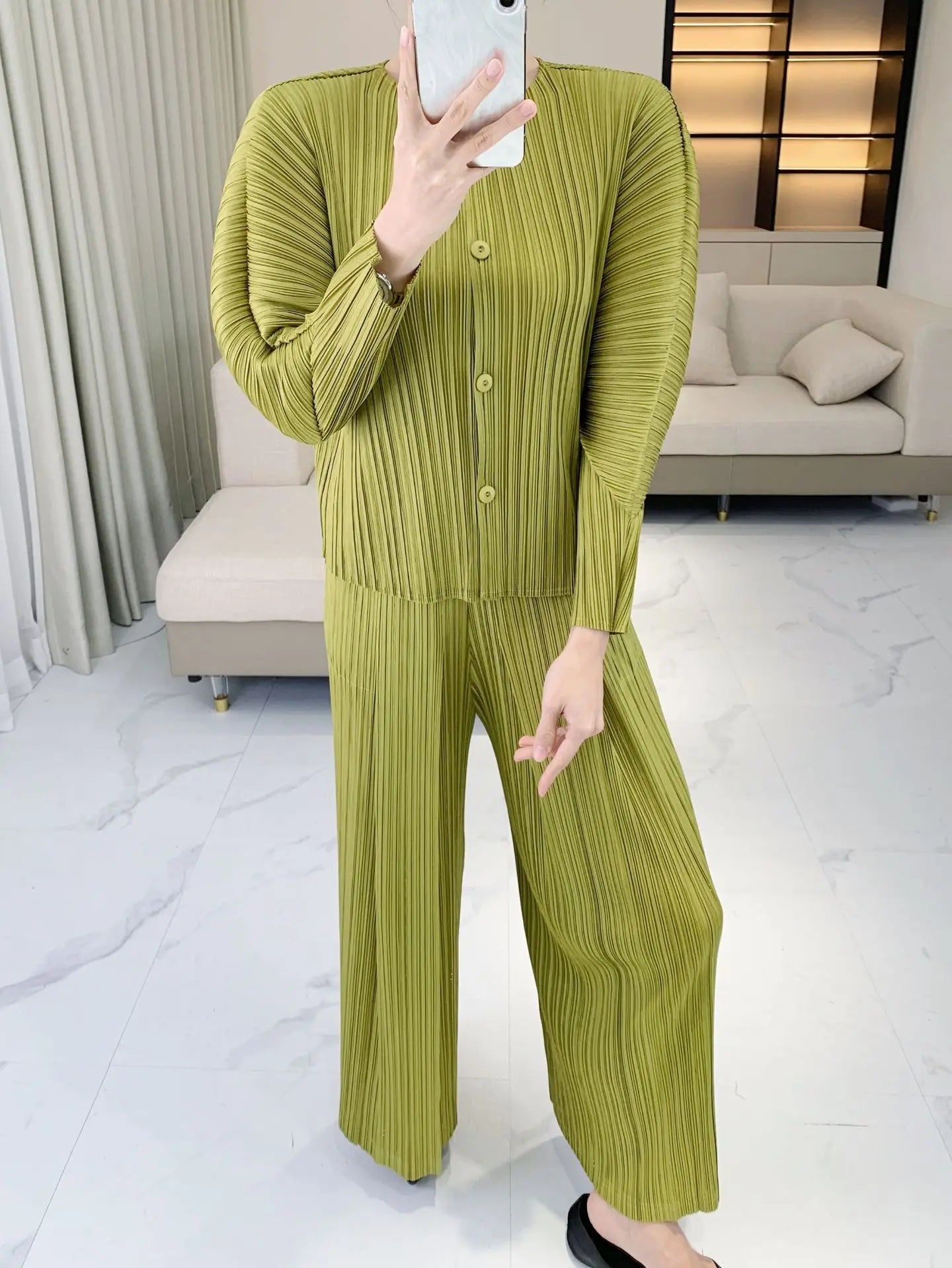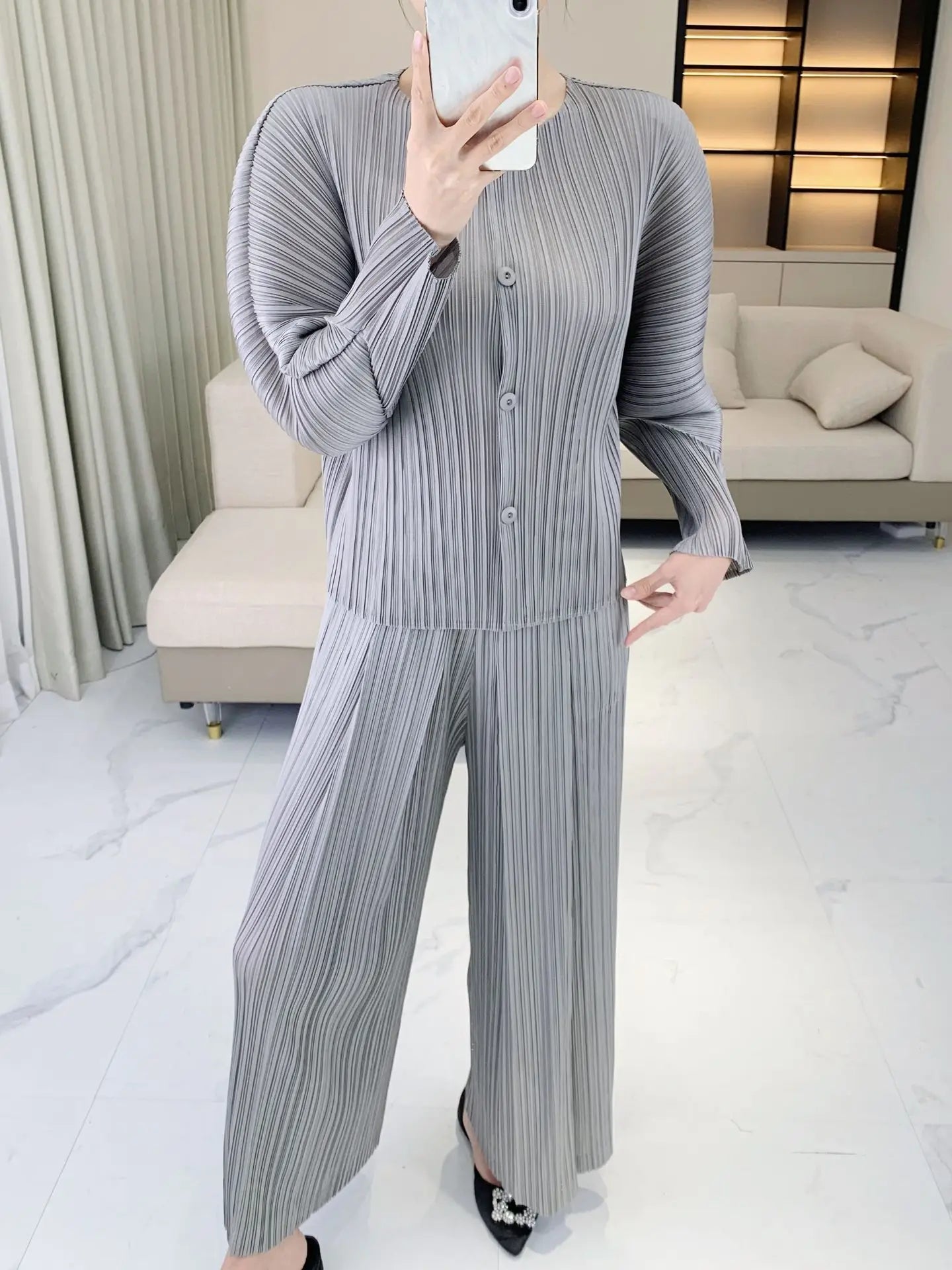 This 2-piece matching set features a long sleeve top and wide-leg pants. offering a chic. comfortable fit. The premium pleats and elastic waistband ensure both style and ease.