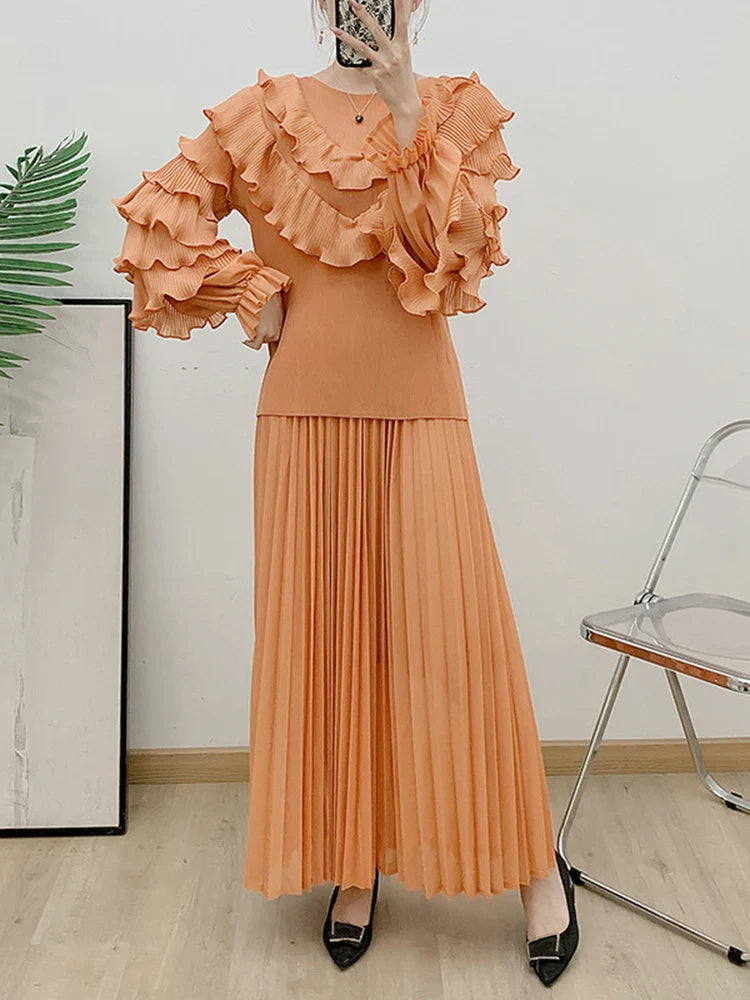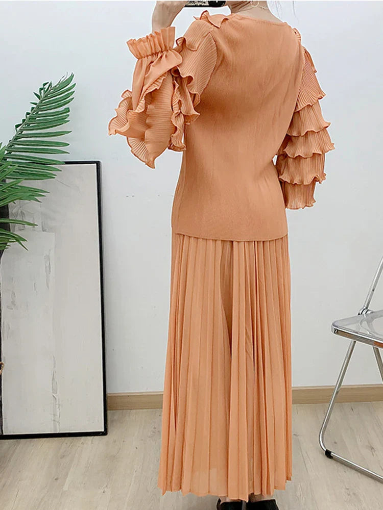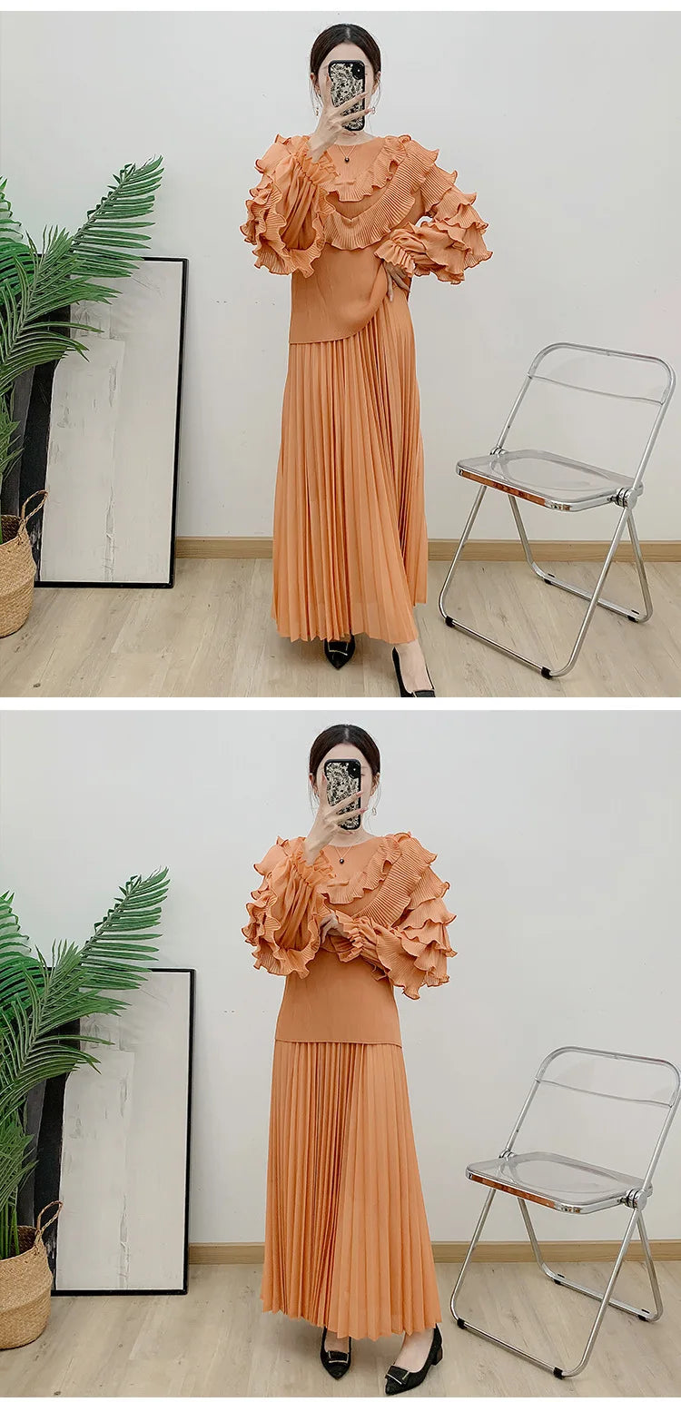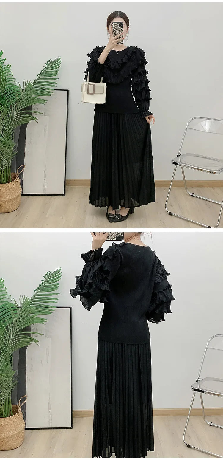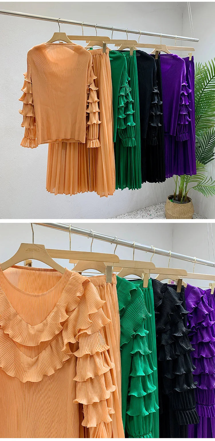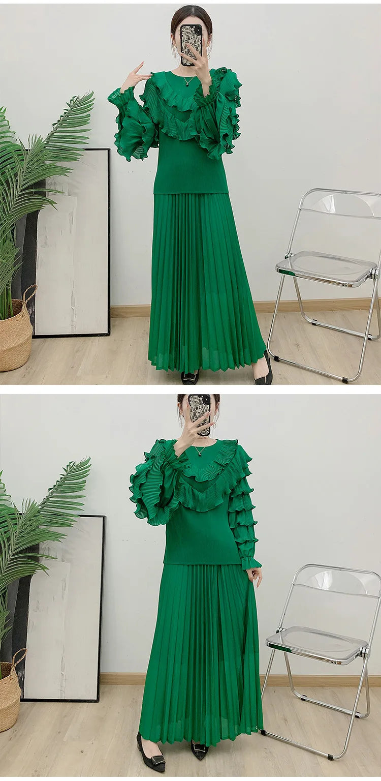 Luxury Truly Pleated Ruffle Long Skirt Set