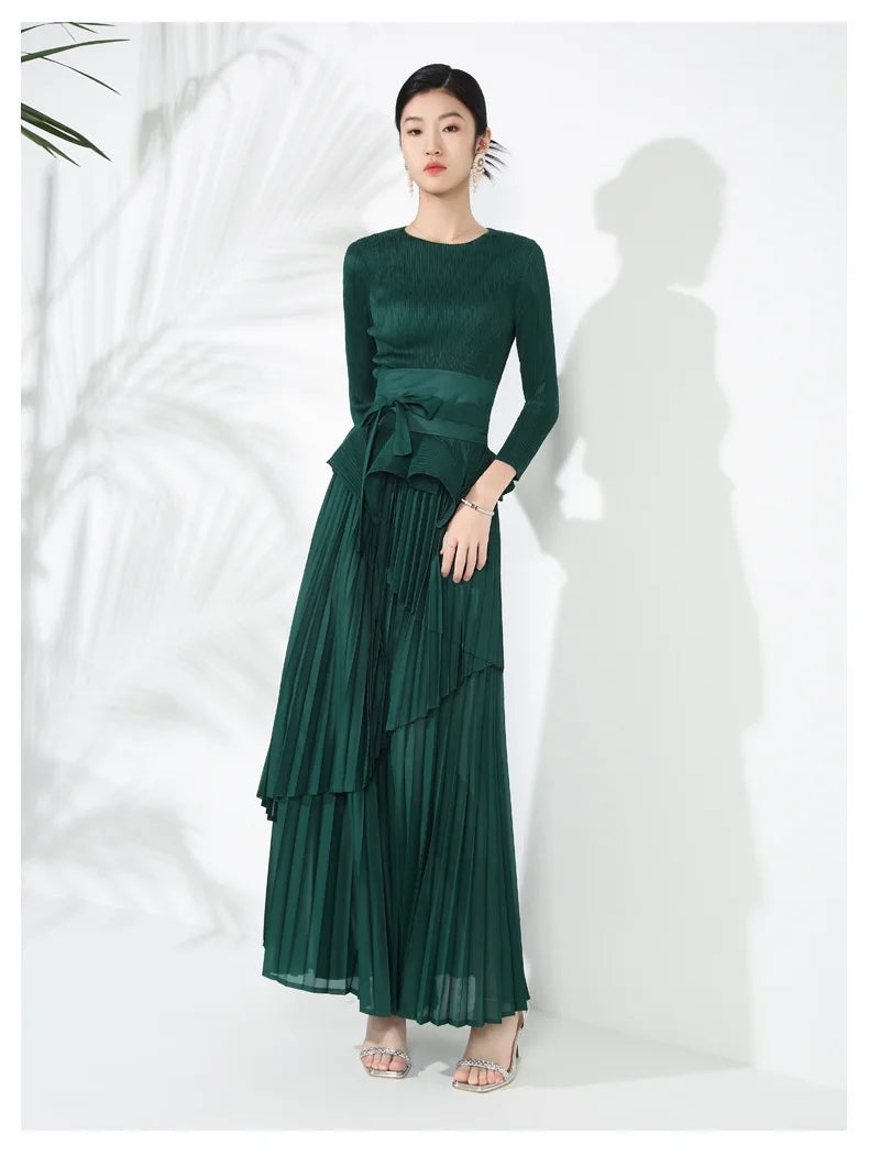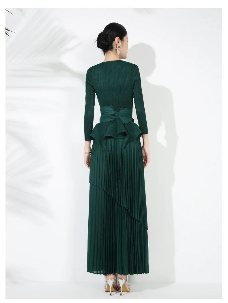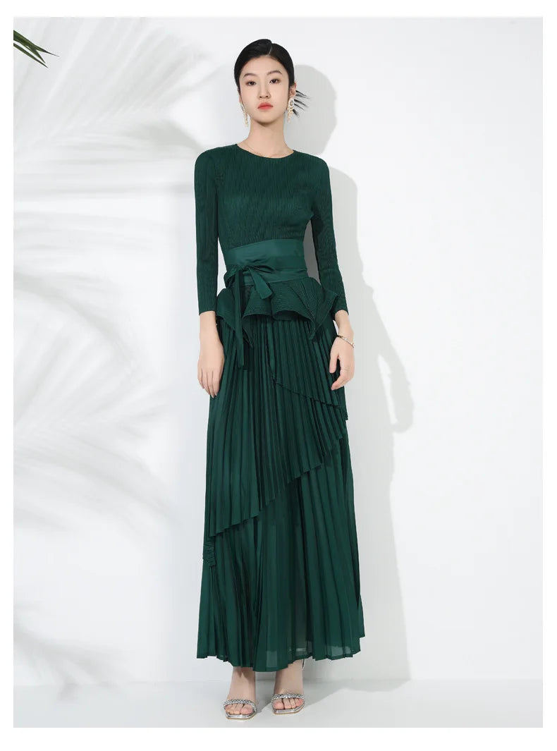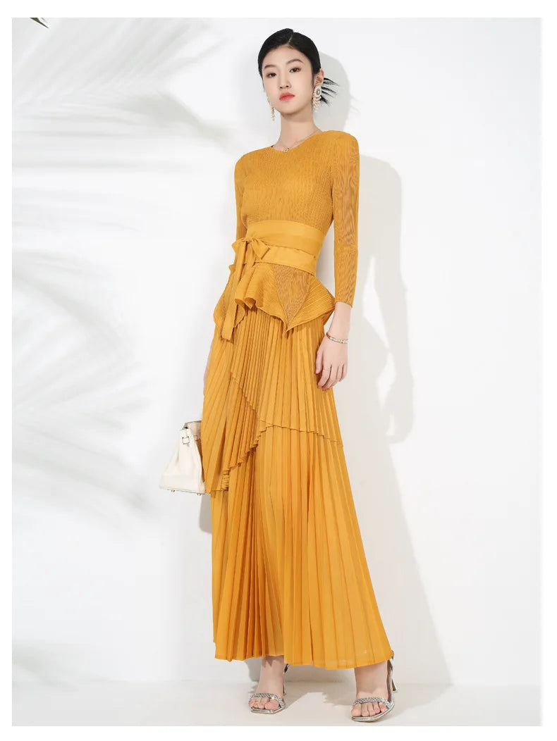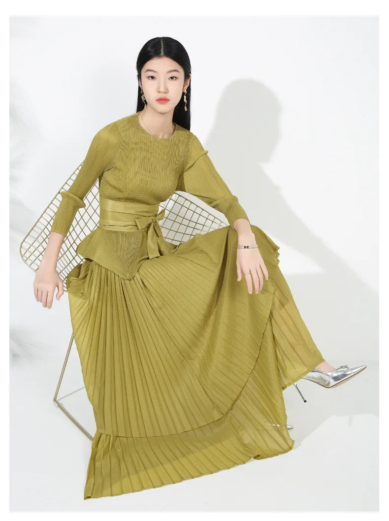 Maxi Skirt Set with Pleated Long Sleeve Top