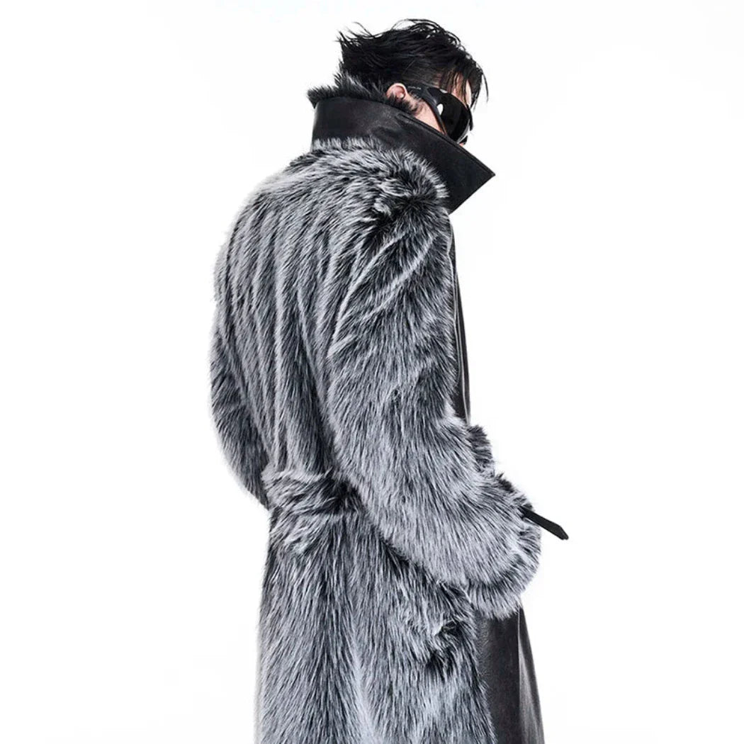 Men's Luxury Faux Leather Fur Extra Long Coat