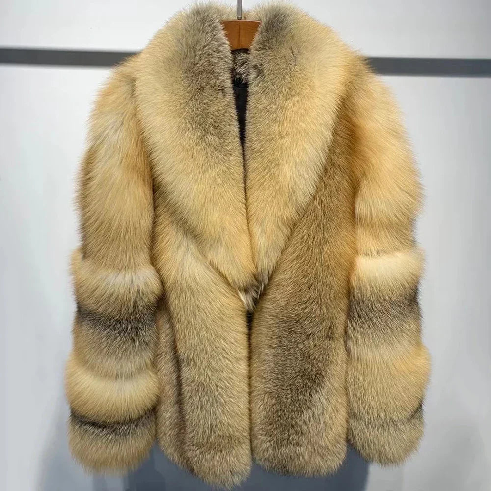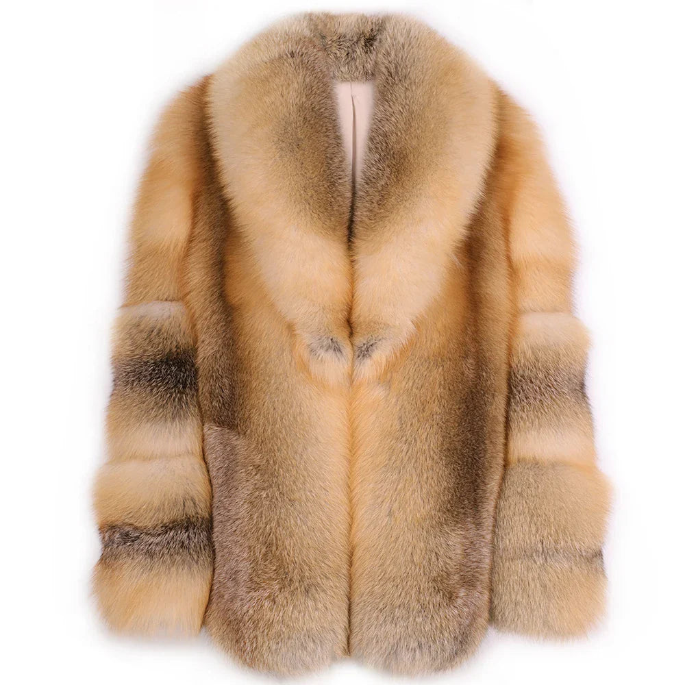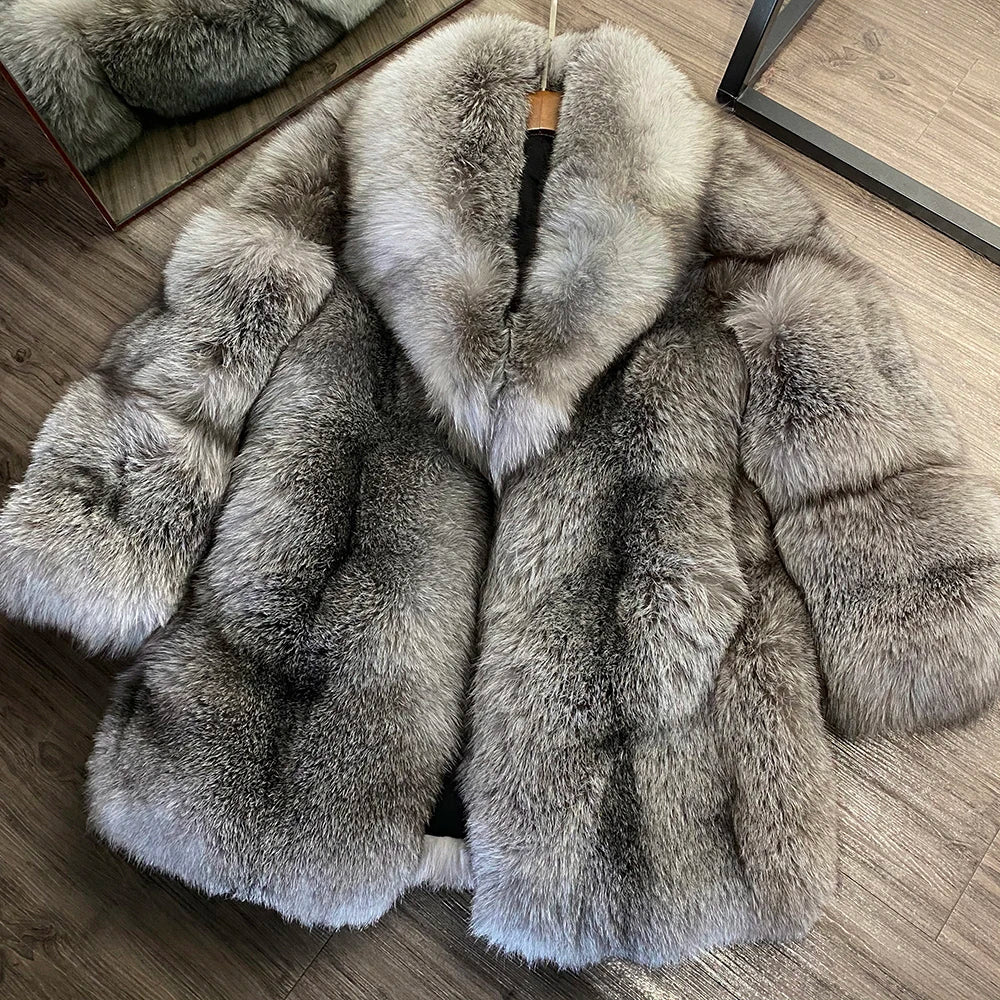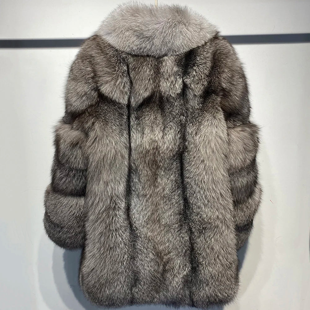 Men's 100% Real Gray Fox Fur Coat