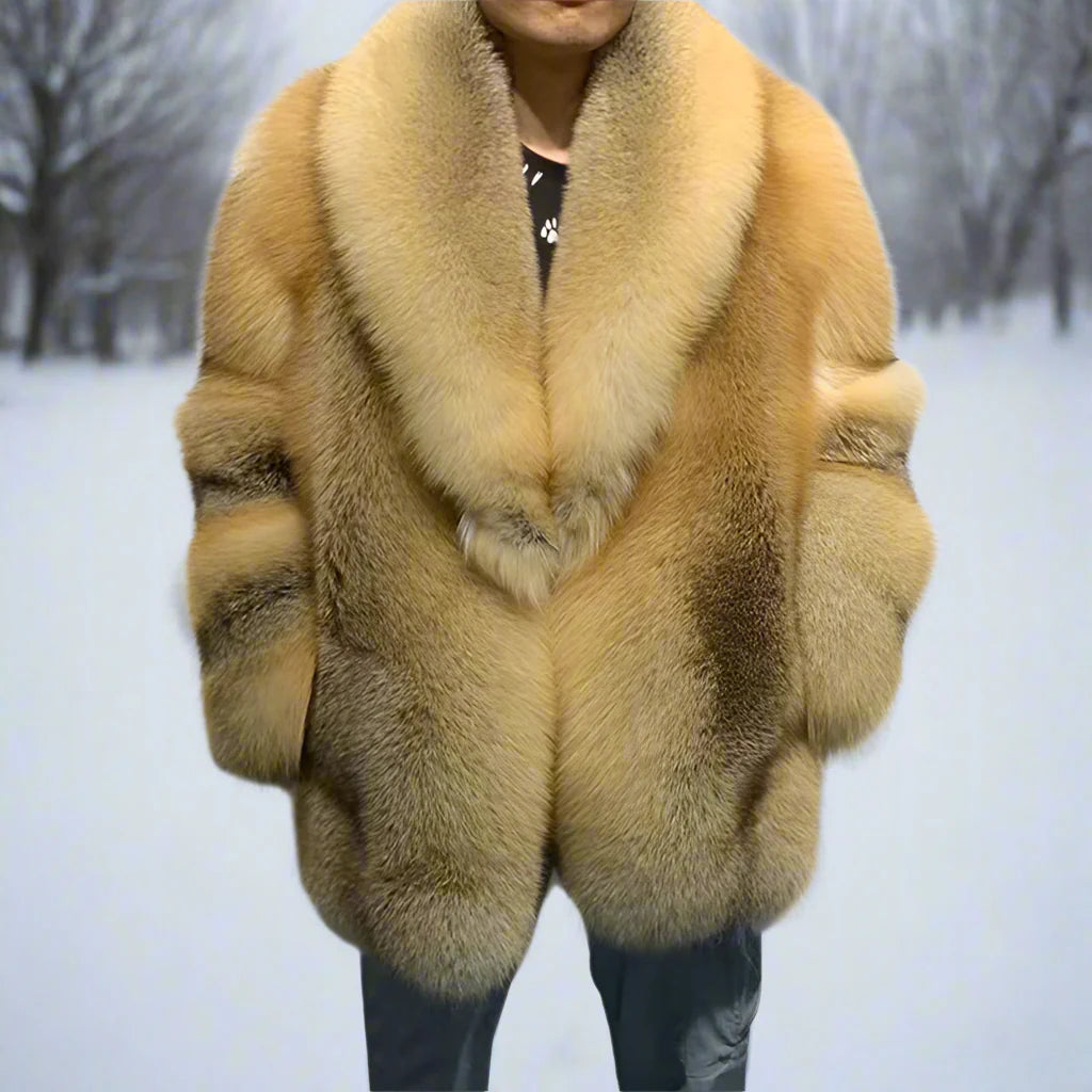 Experience luxurious warmth and style this winter with this Men's 100% Real Gray Fox Fur Coat. Made with premium. 100% real gray fox fur. this coat features an elegant collar and a custom fit for exceptional comfort. Perfect for cold weather.