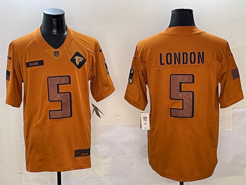 Men’s Atlanta Falcons Drake London #5 Brown 2023 Salute To Service Limited Jersey