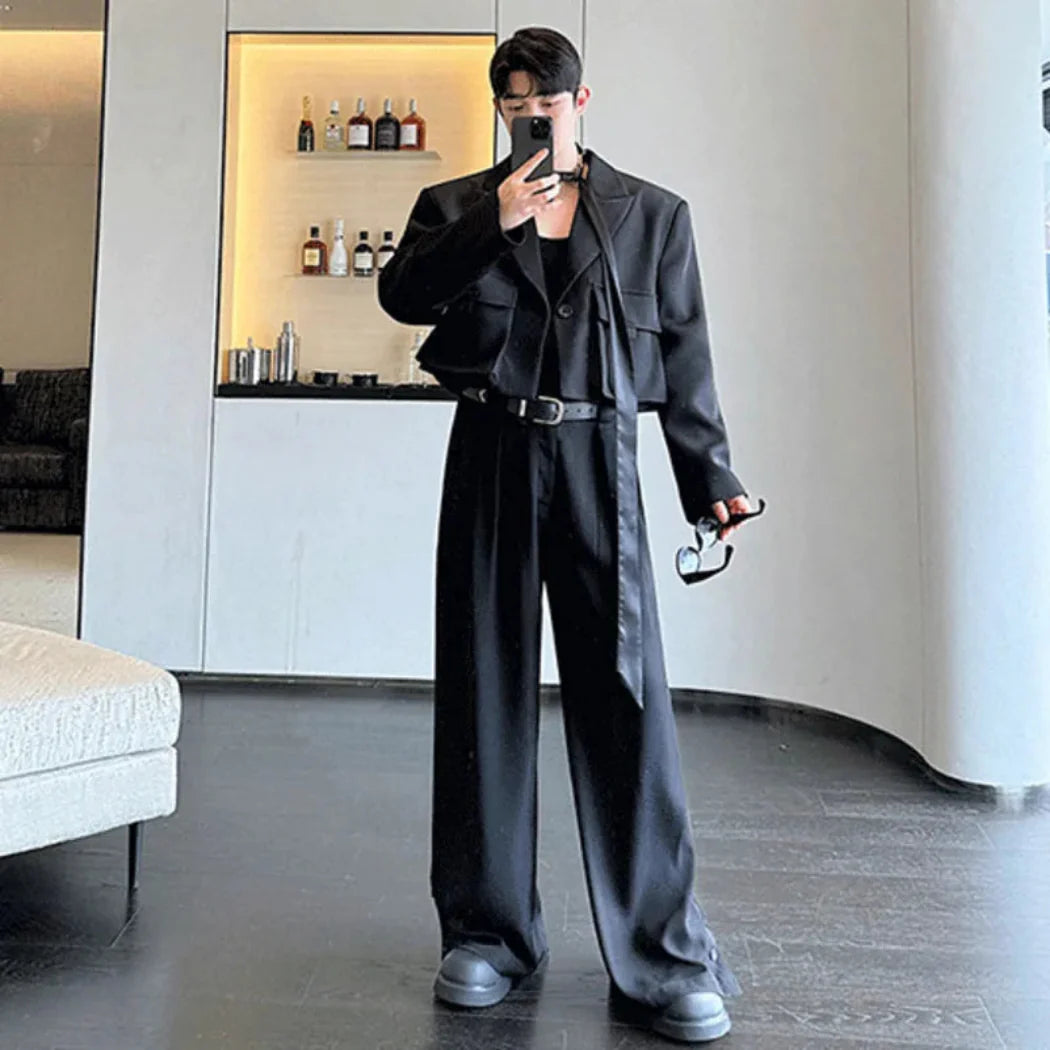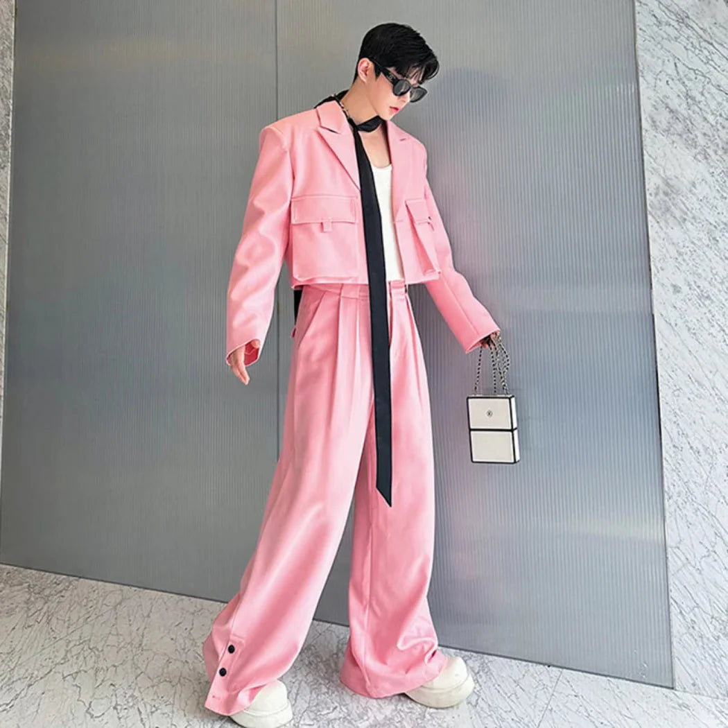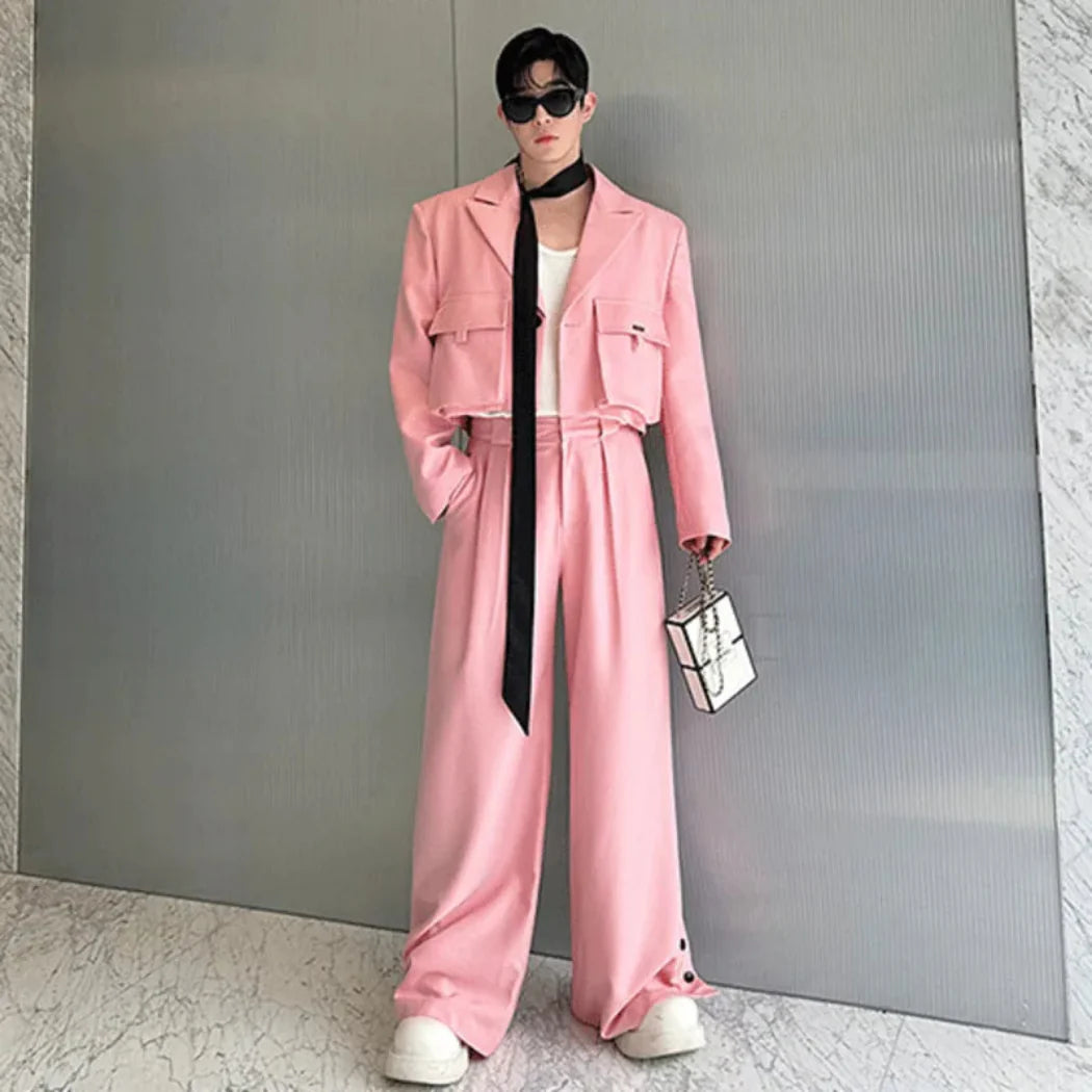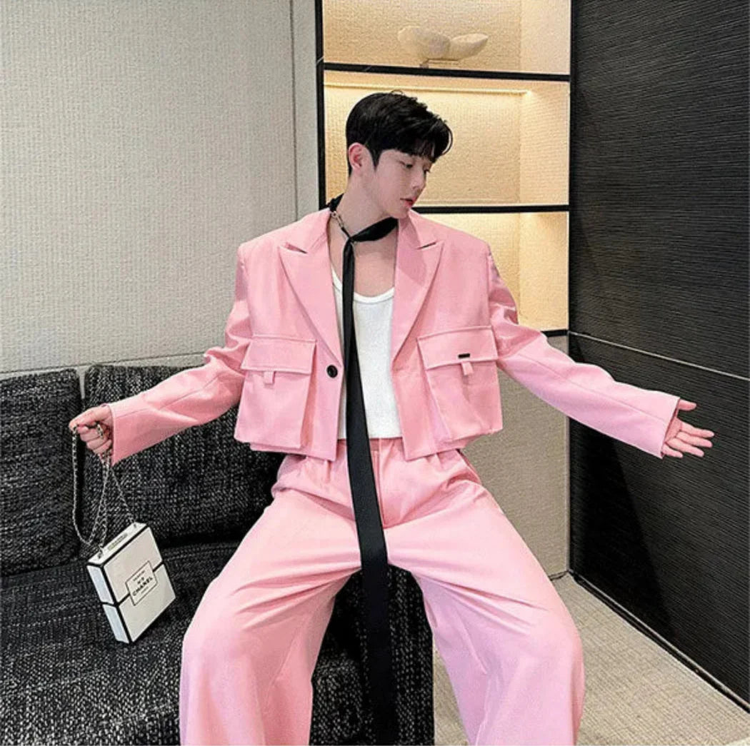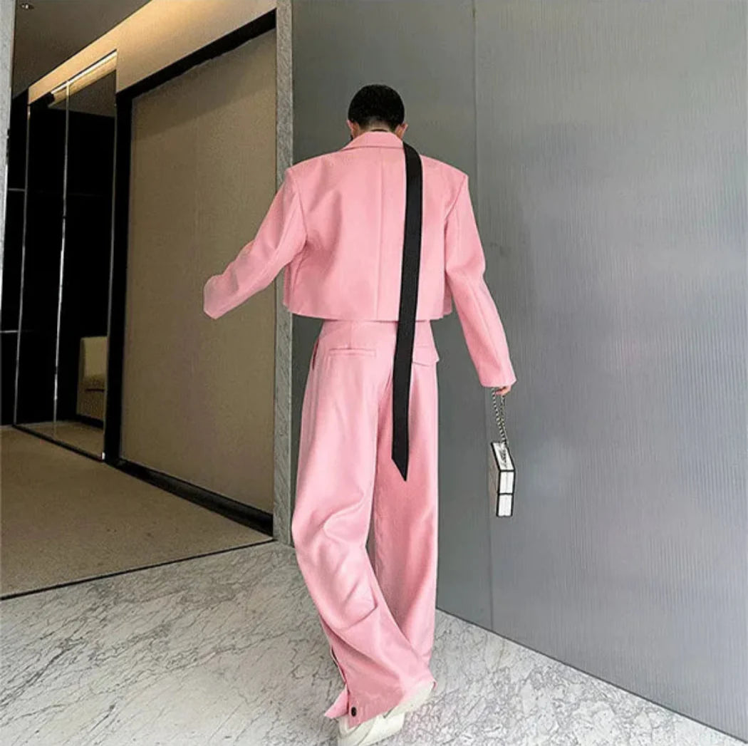 Paired with perfectly matching baggy trousers. available in pink or black. it creates a look that's both relaxed and refined. It's an effortless blend of comfort and contemporary style.