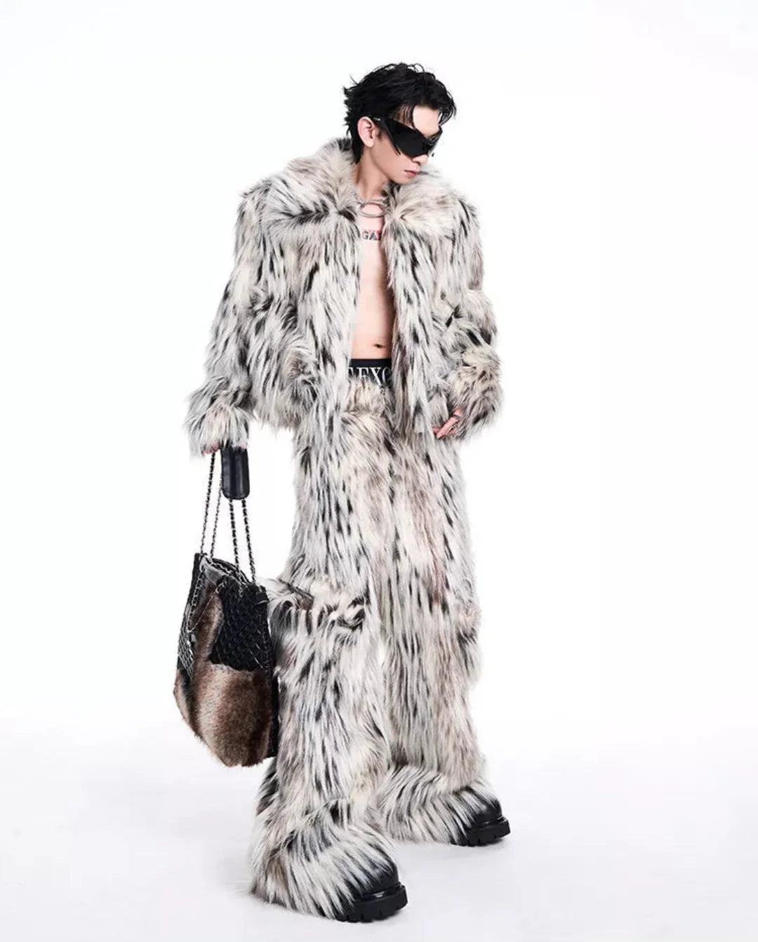 An iconic statement for modern streetwear enthusiasts. this premium faux fur coat and cargo pants set redefines everyday luxury.