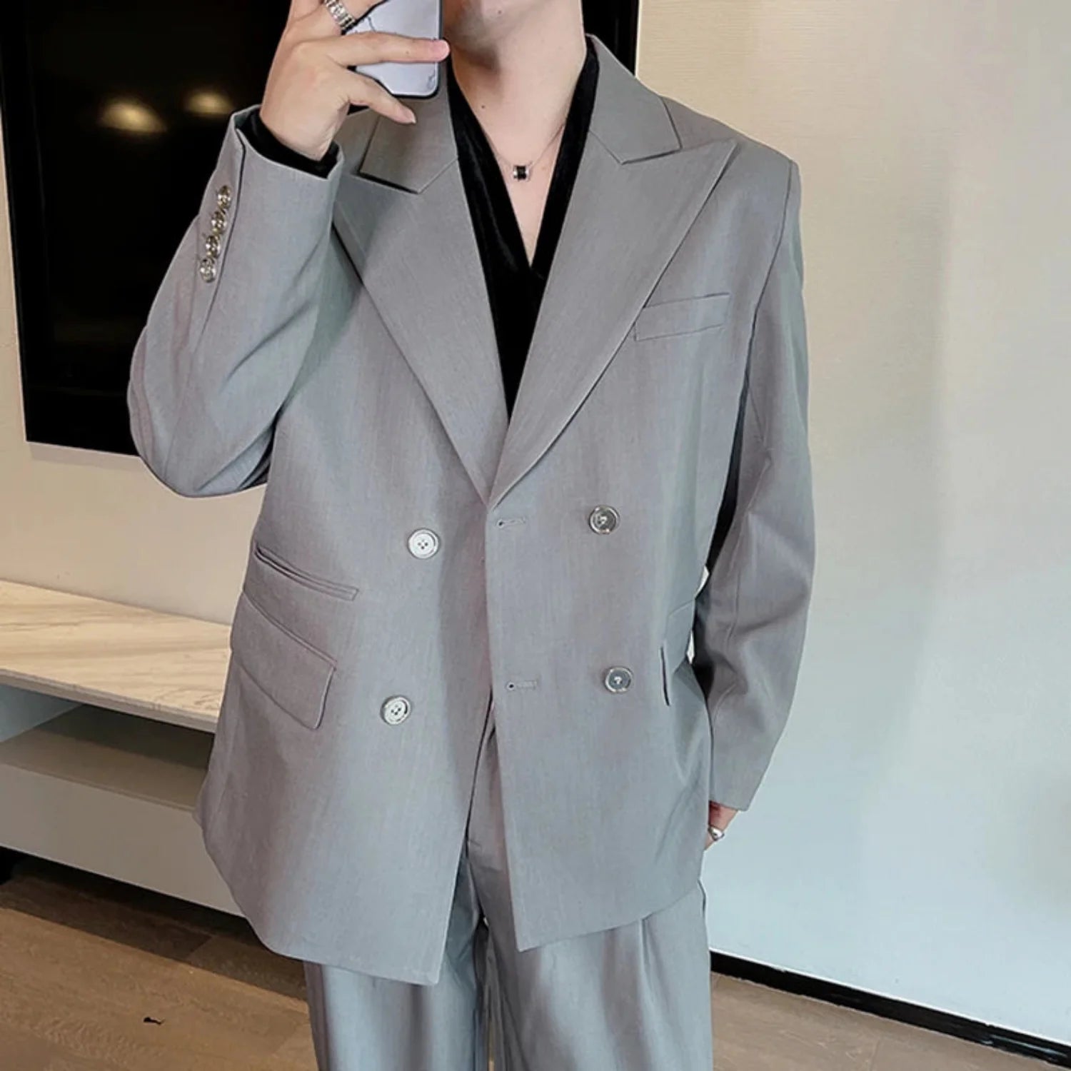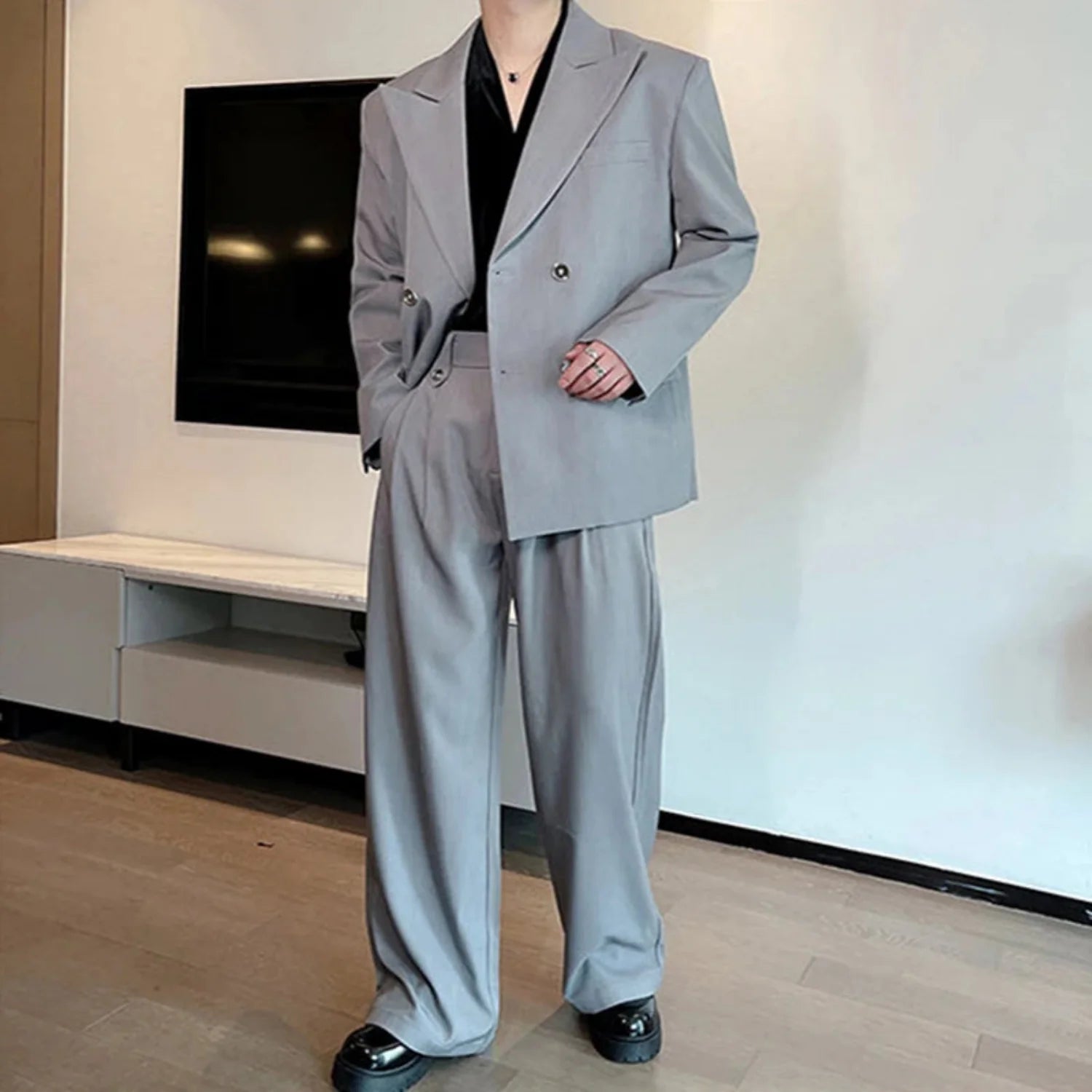 Upgrade your wardrobe with this versatile suit set. Perfect for gentlemen who want to keep it casual yet classy. the loose-fit design provides comfort without sacrificing style.