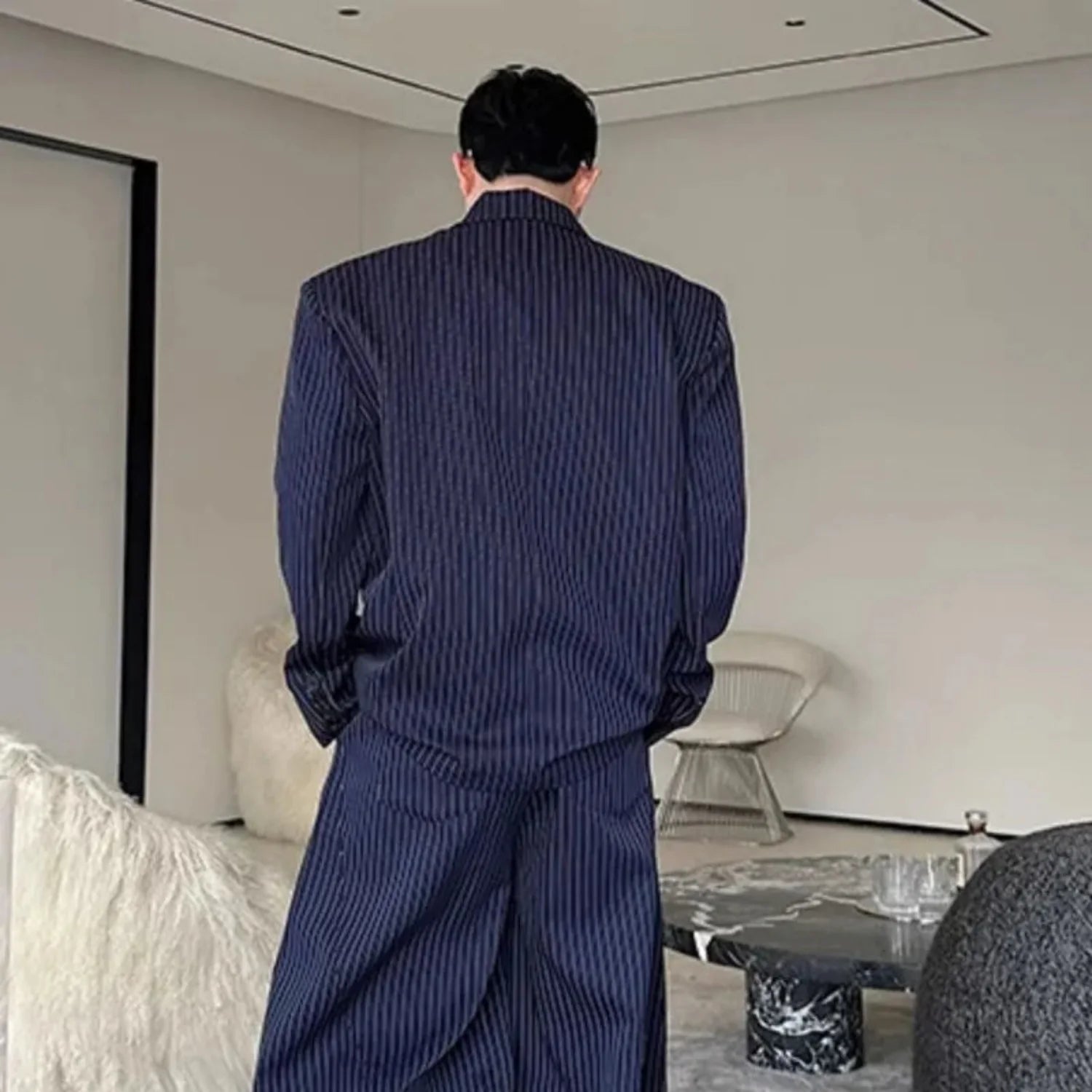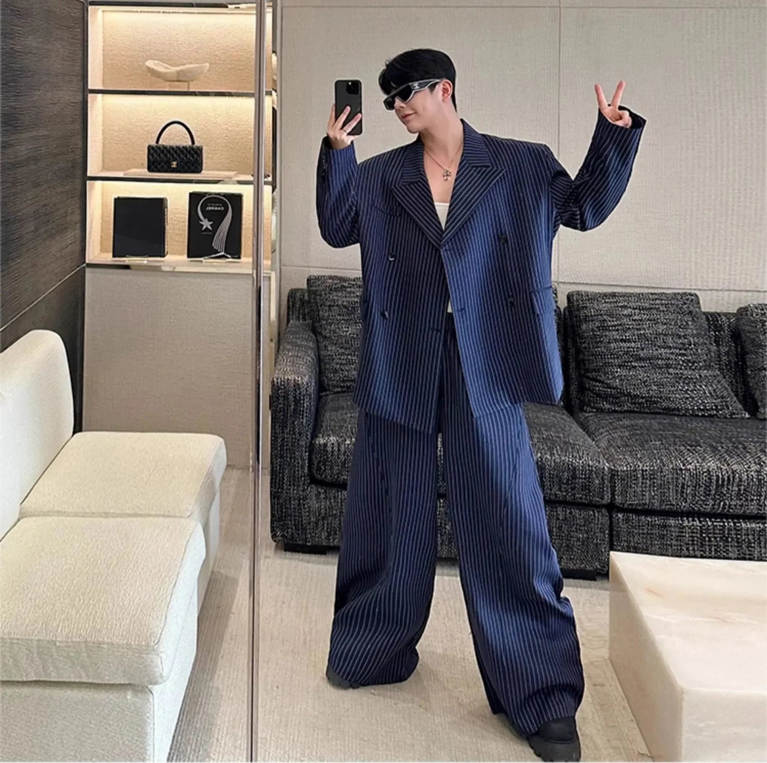 A sophisticated take on classic suiting. this striped set combines a modern-fit blazer with wide-leg oversized pants for effortless style.