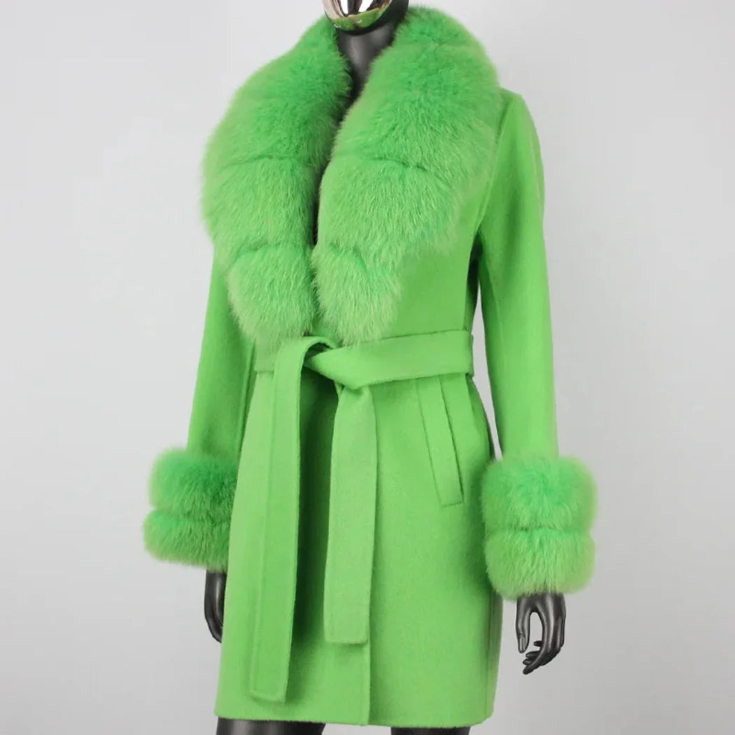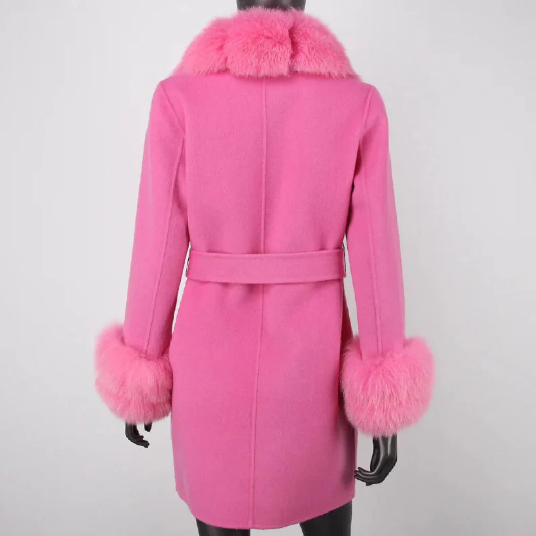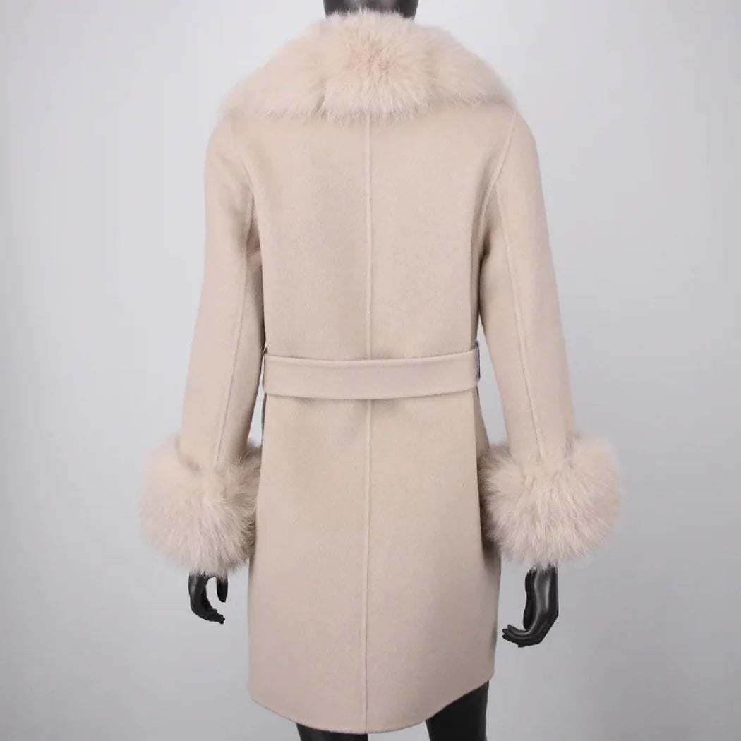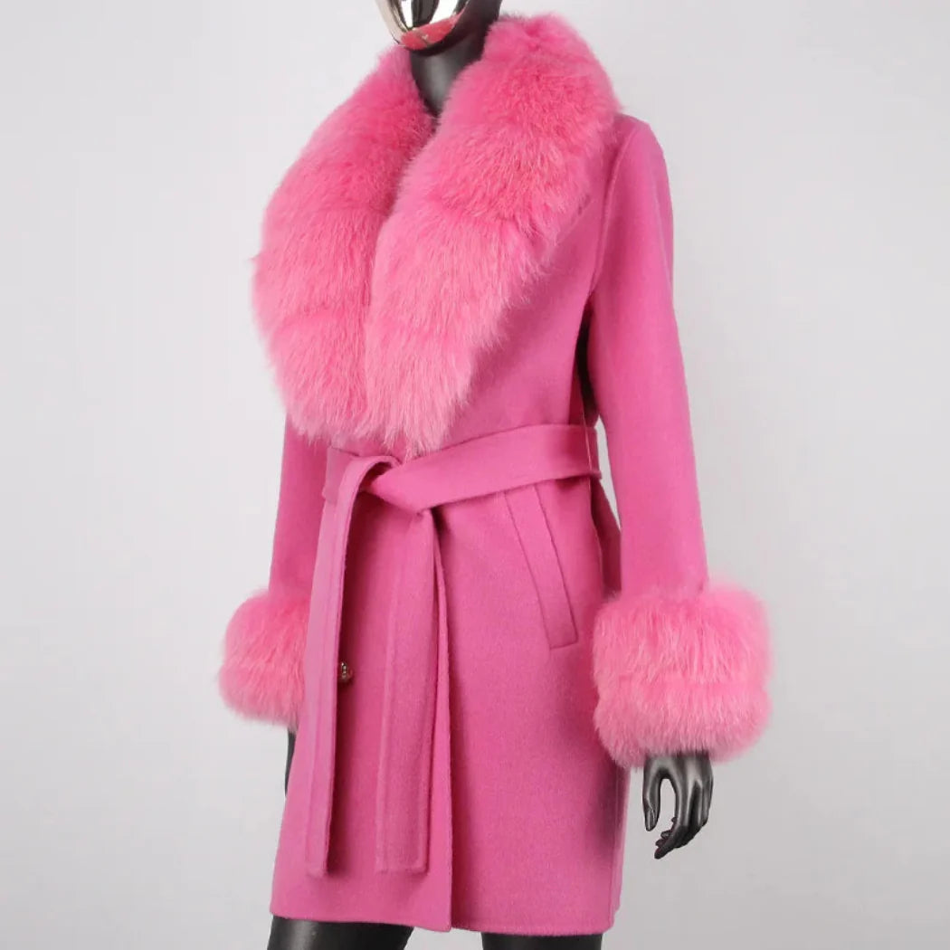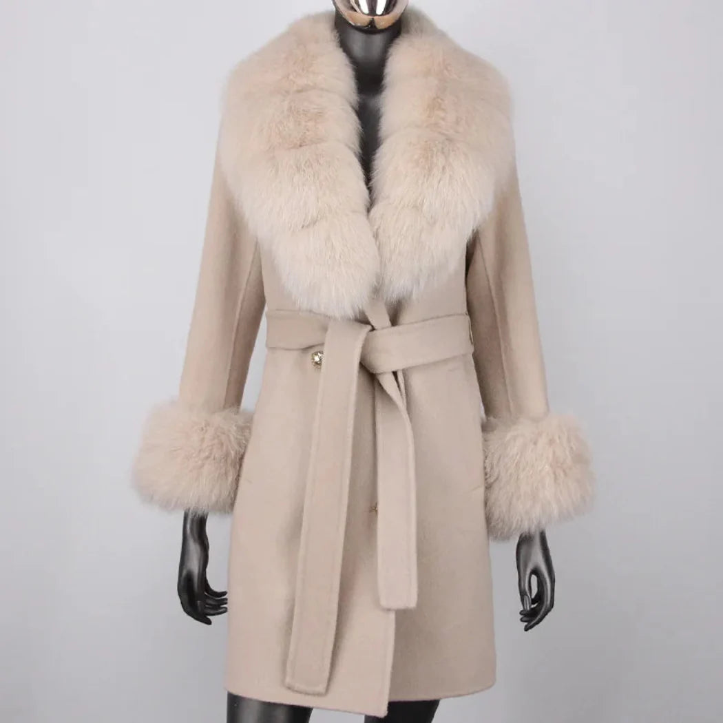Stay warm and cozy in style with this petite cashmere wool real fur coat. Made with a premium cashmere and wool blend and featuring real premium fox fur trim. this jacket provides exceptional warmth and a comfortable fit.