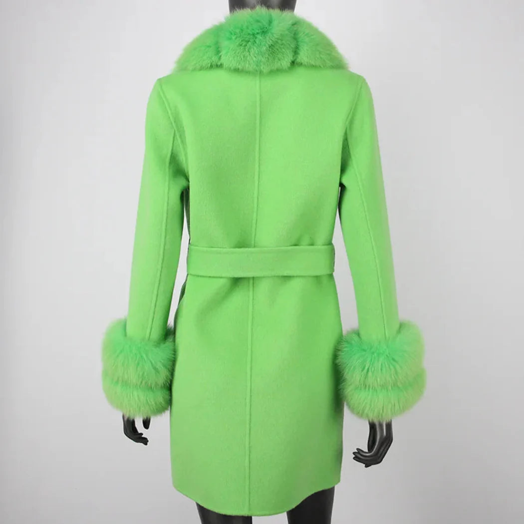 Petite Cashmere Wool Real Fur Jacket