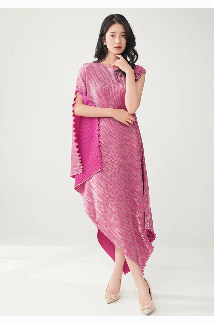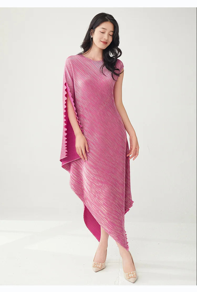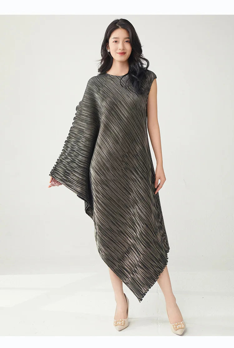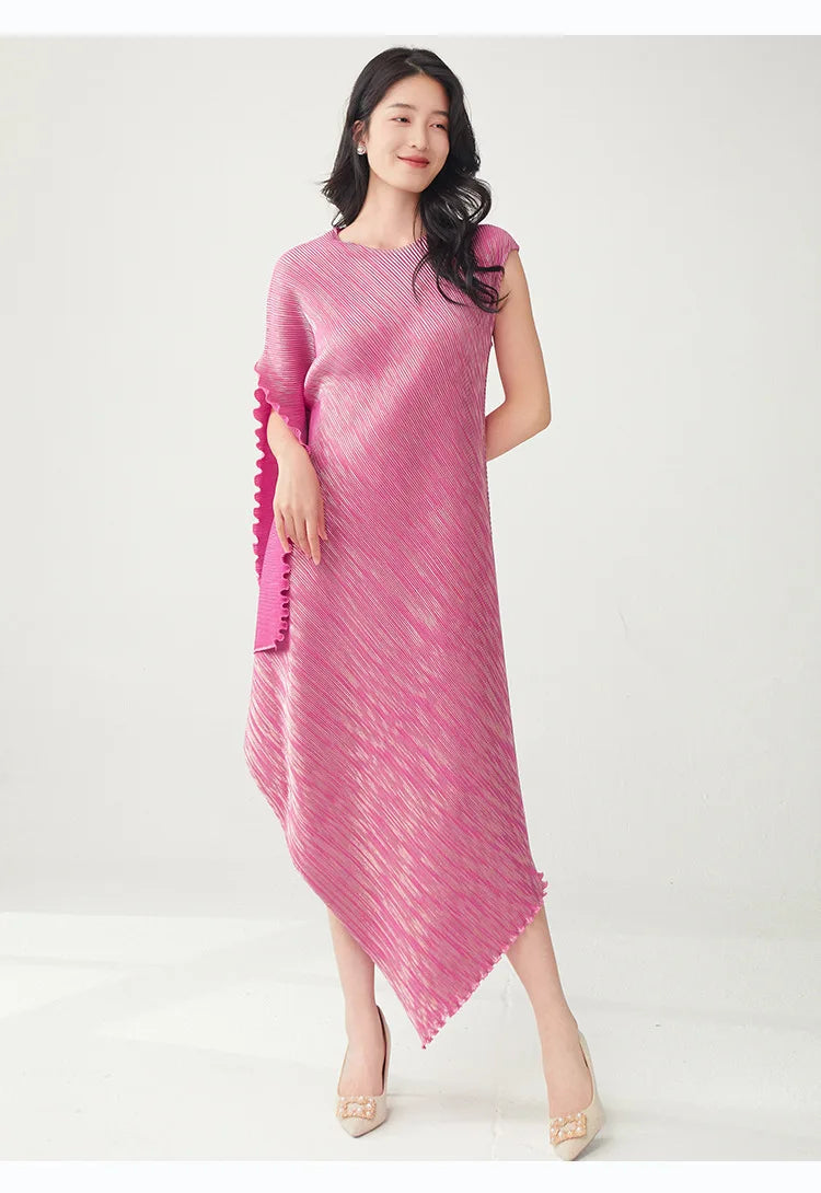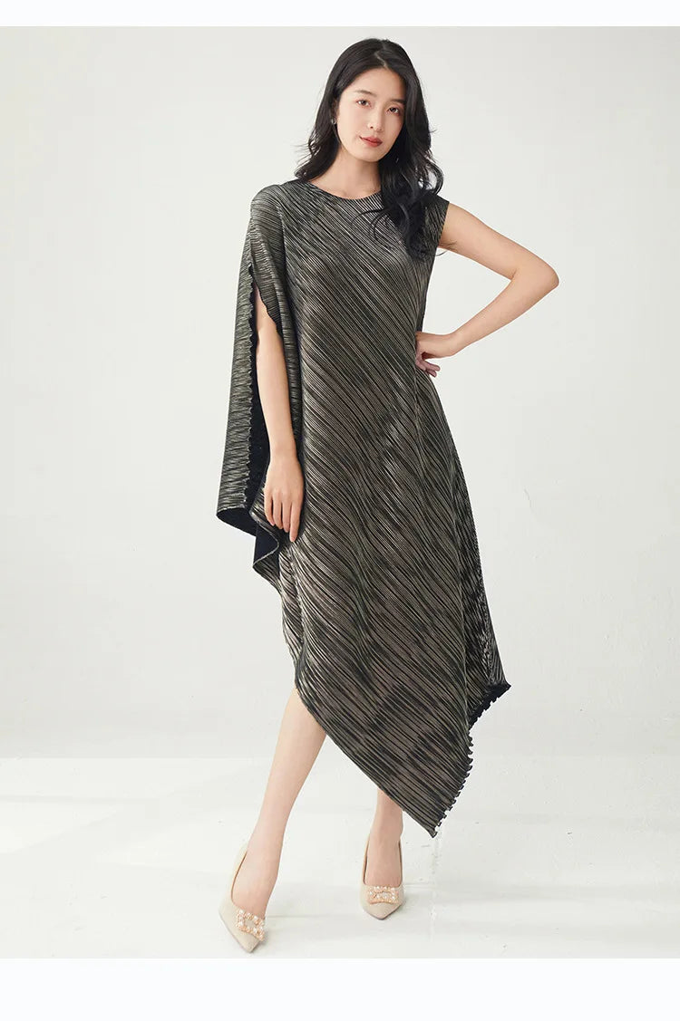 Struggling to find a dress that's both elegant and distinctive? Tired of feeling restricted in stiff. unflattering designs? This pleated asymmetric midi dress offers a unique draped texture and a flattering silhouette that moves with you.