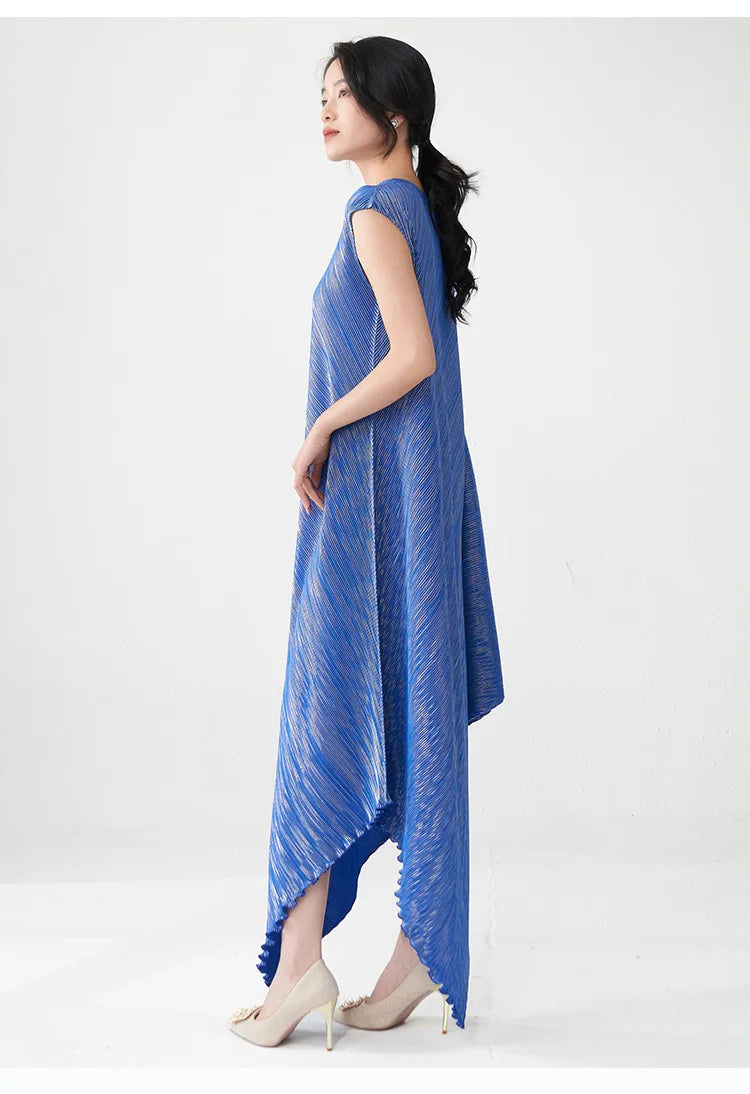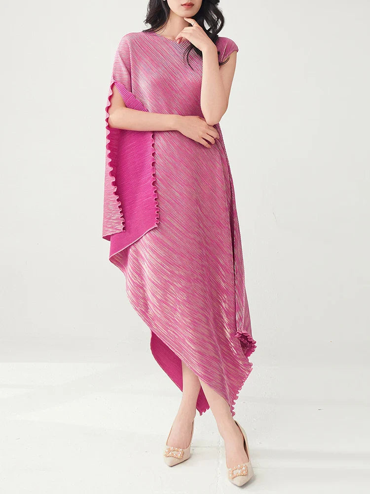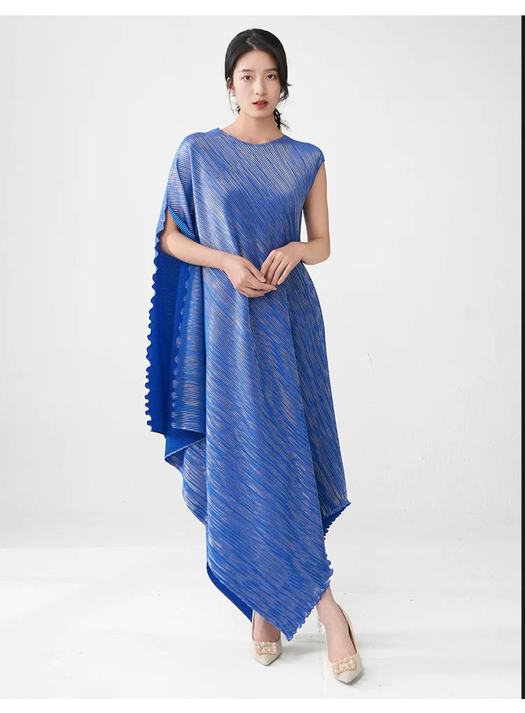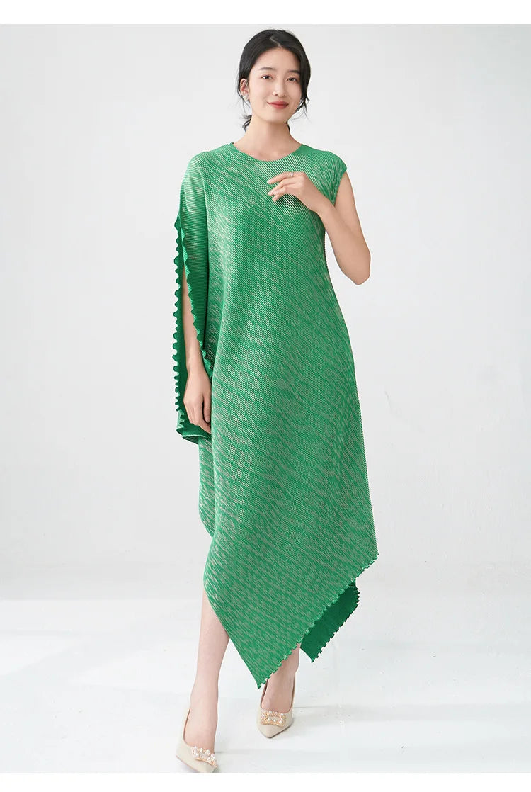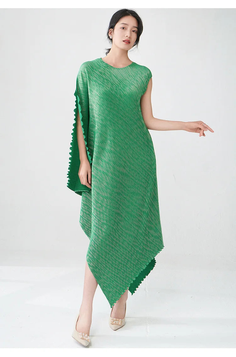 Struggling to find a dress that's both elegant and distinctive? Tired of feeling restricted in stiff. unflattering designs? This pleated asymmetric midi dress offers a unique draped texture and a flattering silhouette that moves with you.