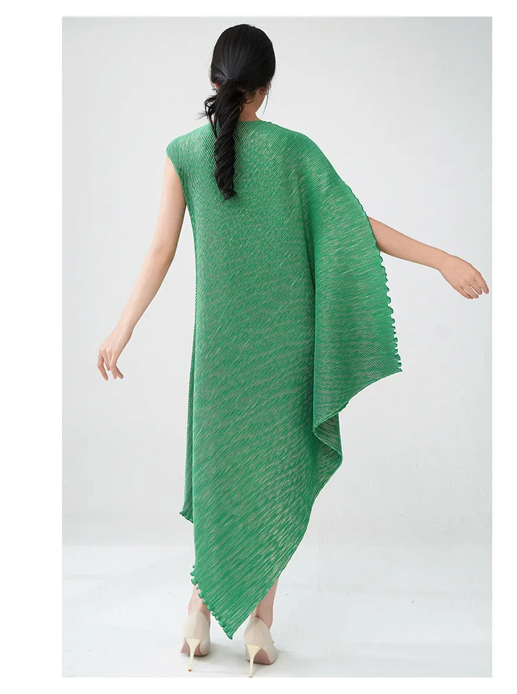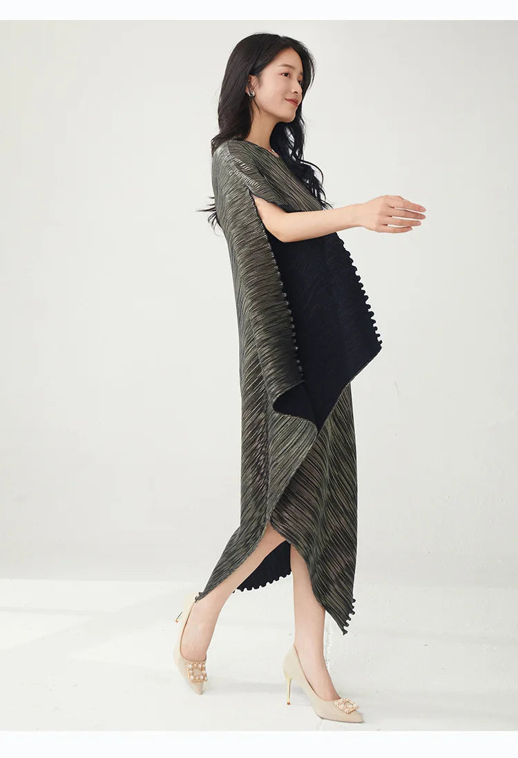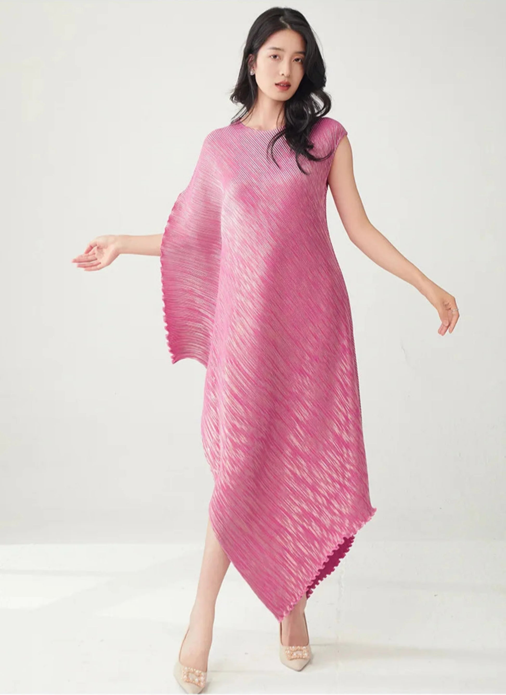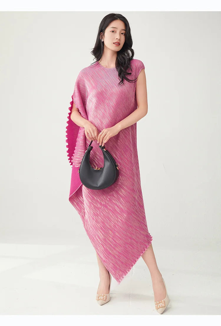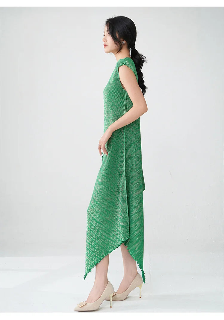 Struggling to find a dress that's both elegant and distinctive? Tired of feeling restricted in stiff. unflattering designs? This pleated asymmetric midi dress offers a unique draped texture and a flattering silhouette that moves with you.