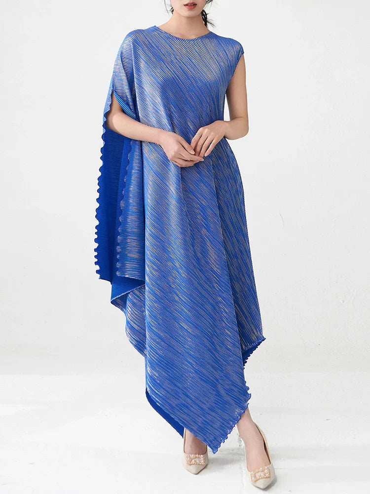 Pleated Asymmetric Dress - Unique Textured Drape