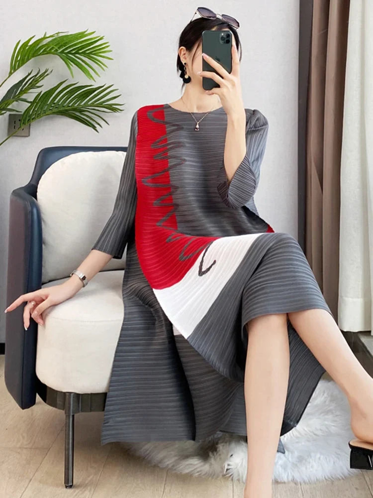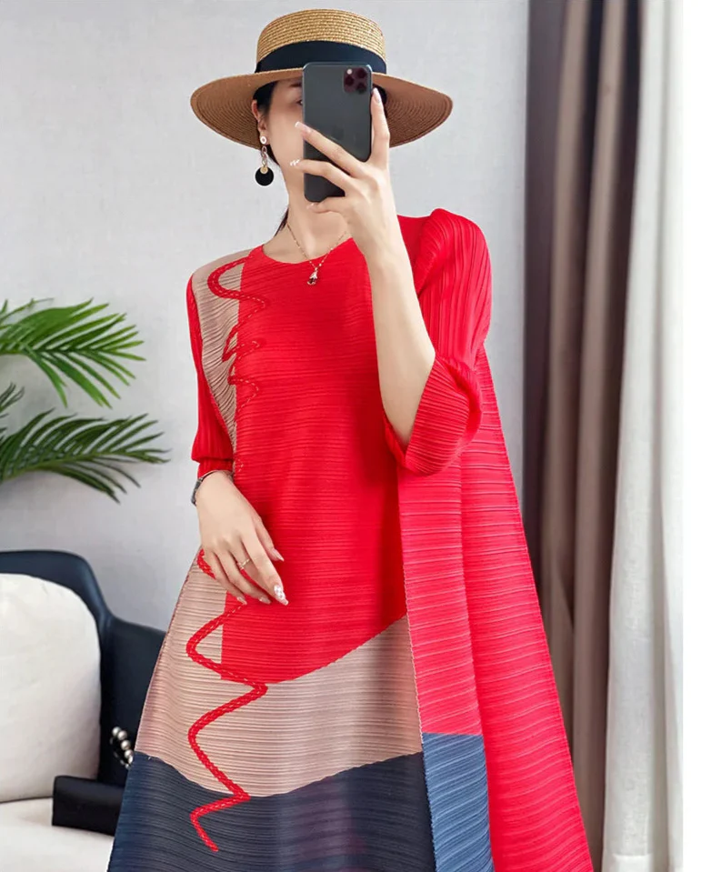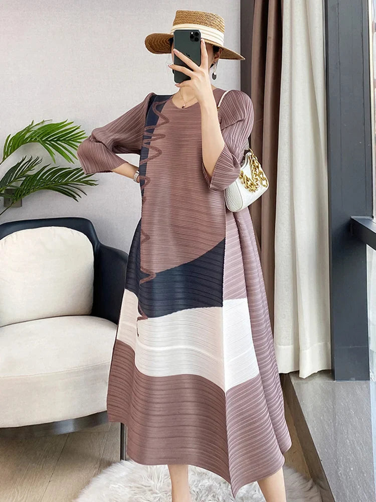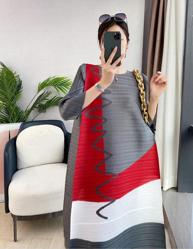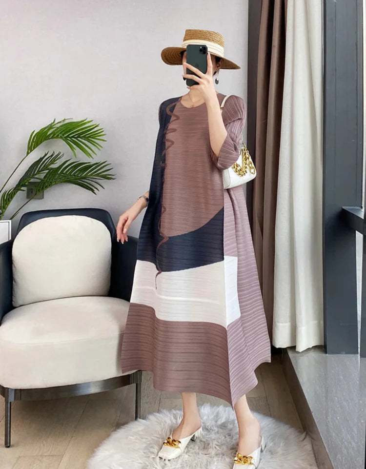 This dress embodies effortless elegance. With its premium pleats. 3/4 sleeves. and elegant patterns. it offers a relaxed silhouette that balances sophistication with comfort