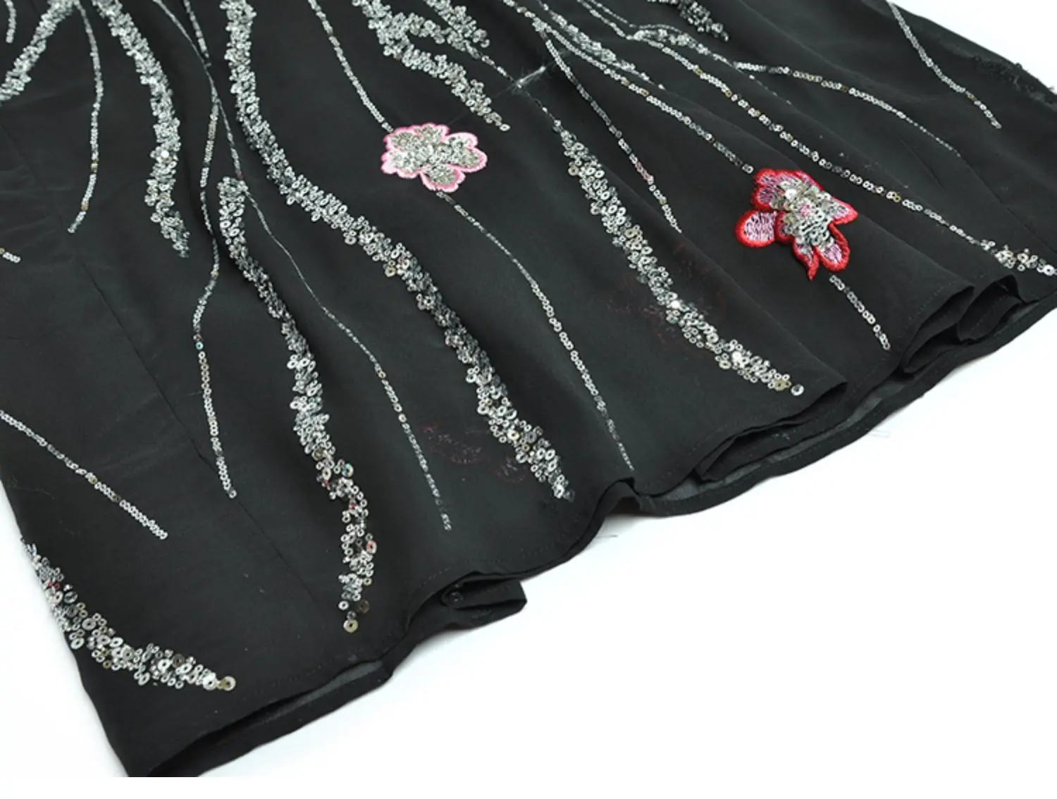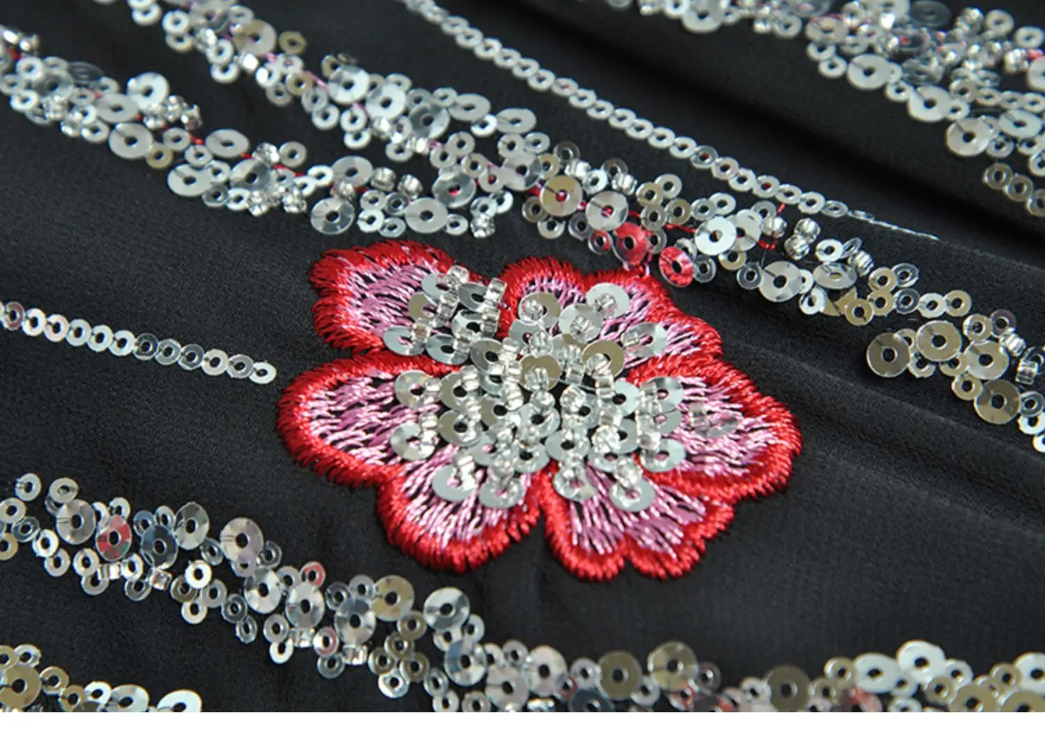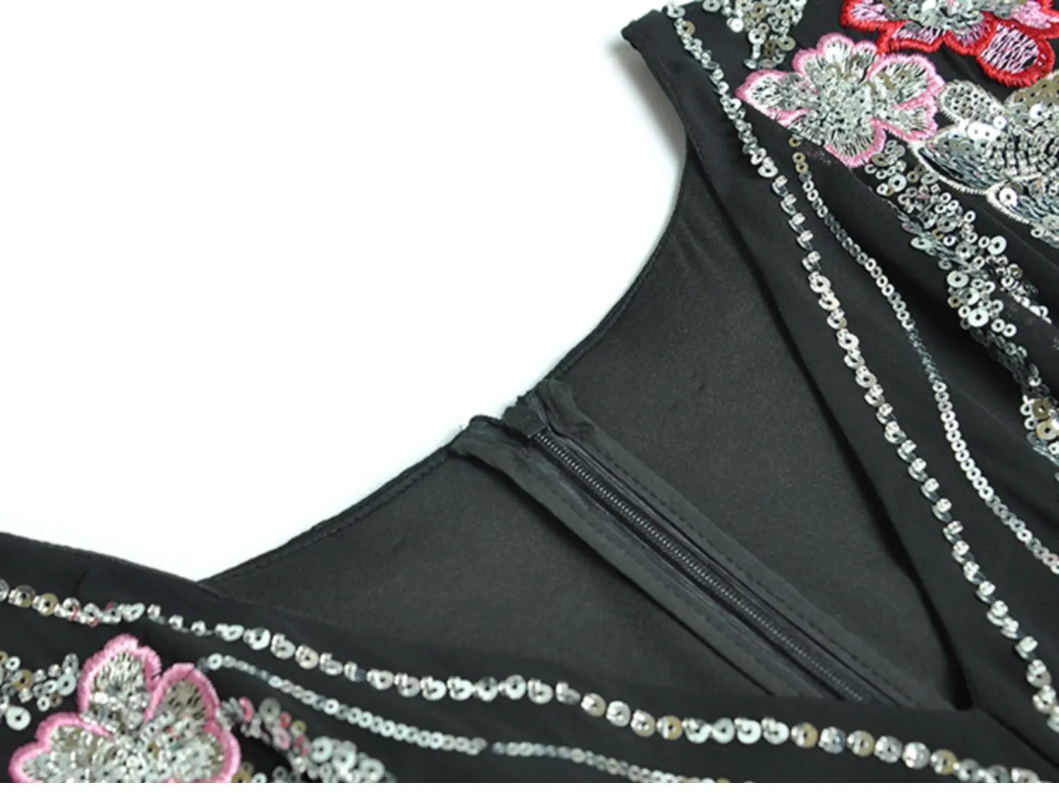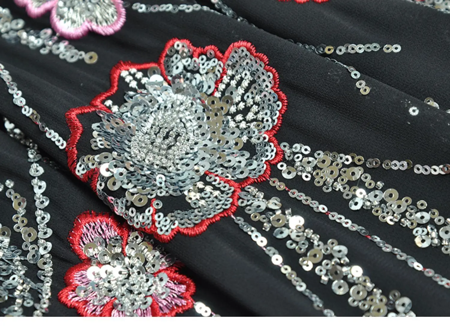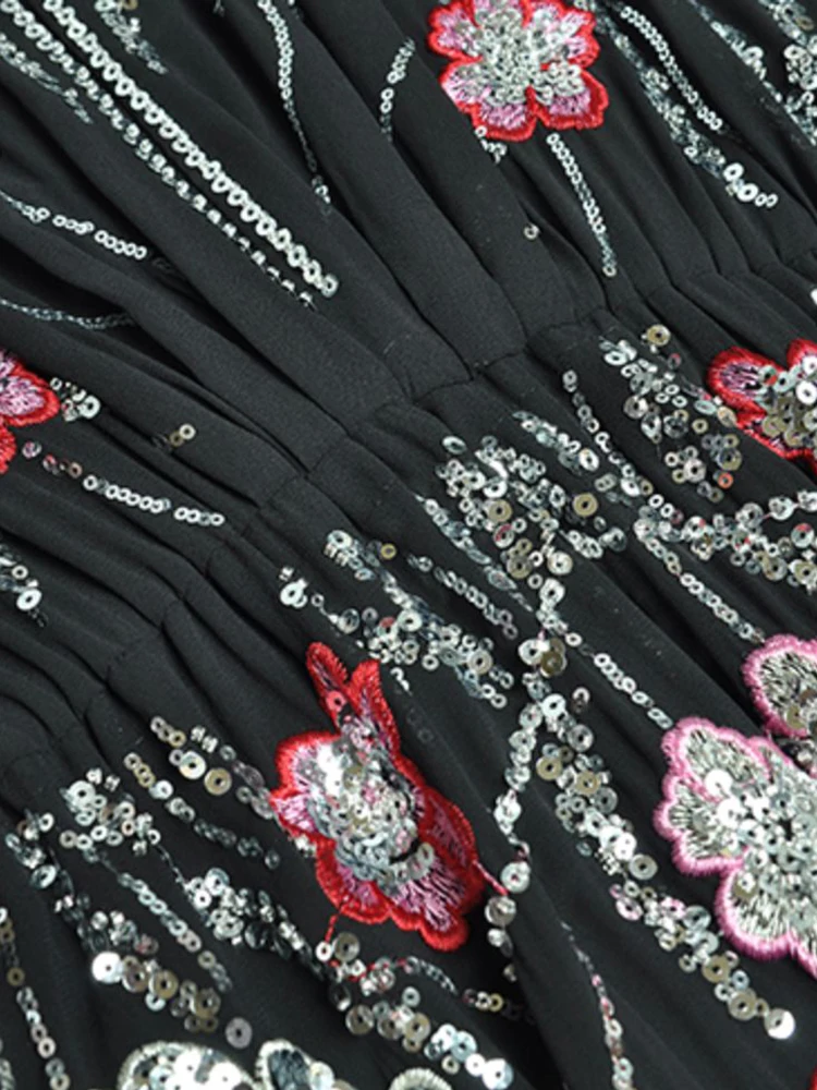 Want to turn heads at your next night out? This Luxe Floral Sequin Batwing Dress is your go-to. Imagine all that sparkle catching the light as you move—it's seriously mesmerizing.