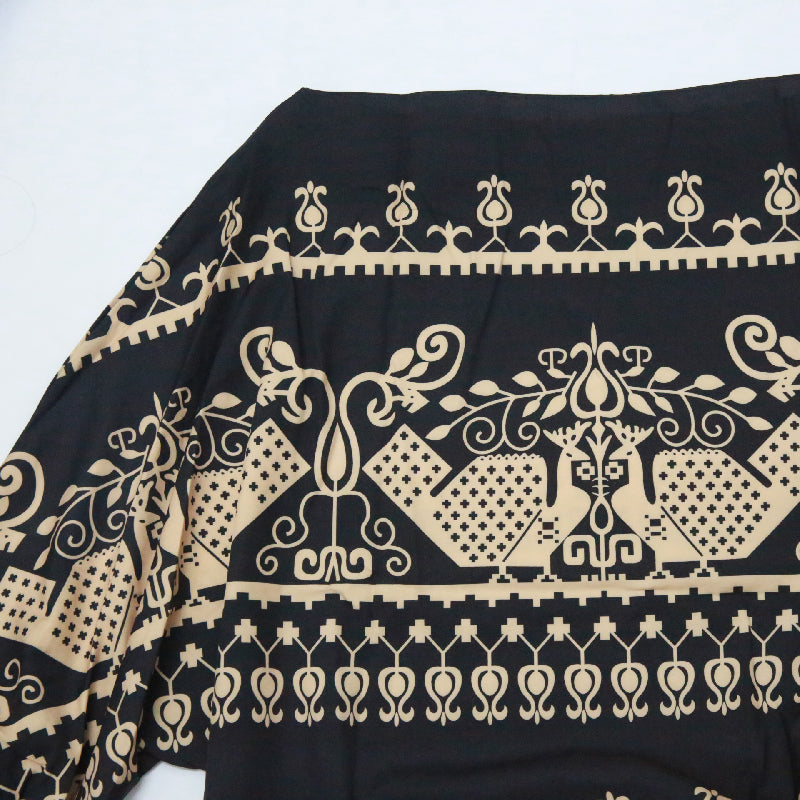Simple Loose Off-The-Shoulder Geometric Printed Puff Sleeves T-Shirt Top