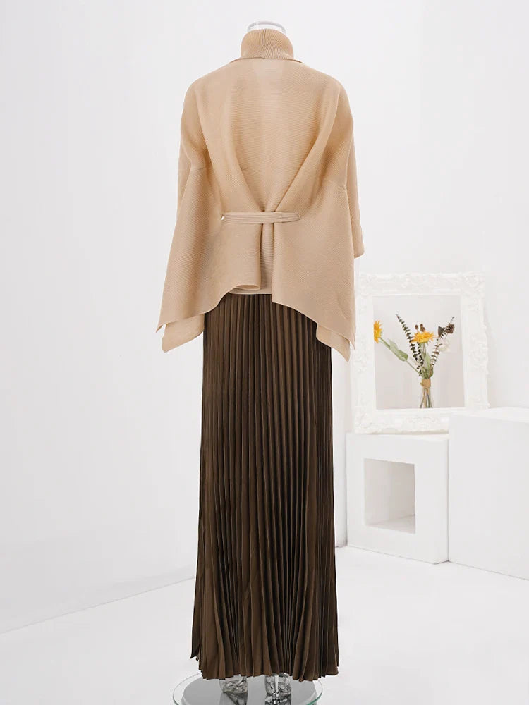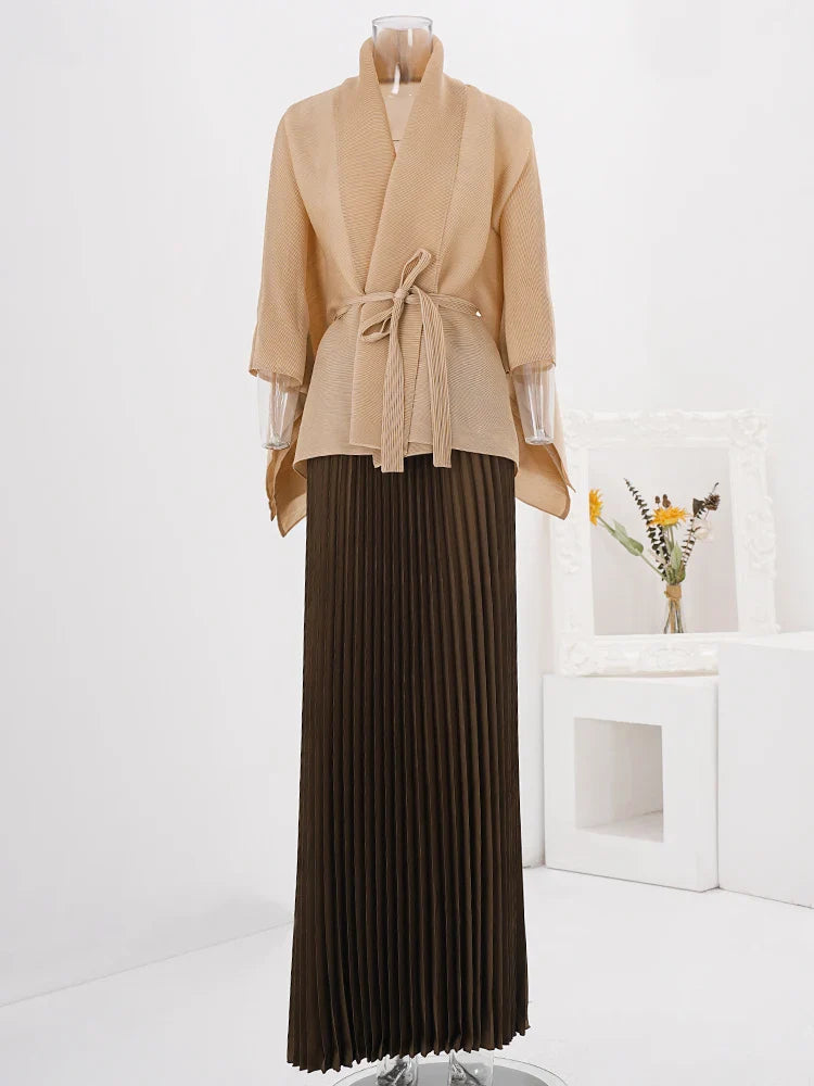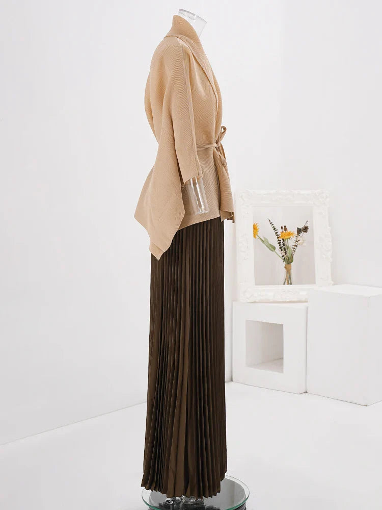 Crafted from genuine pleated fabric. the set includes a long. flowing skirt with an elastic waistband and a chic cardigan to complete the sophisticated look. Style Tip: Pair with a simple blouse and heels for an effortlessly stylish ensemble.