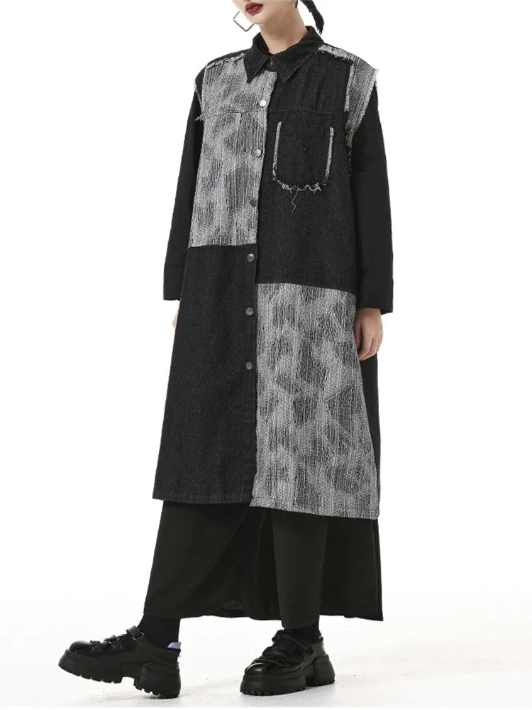 Looking for a bold. eco-friendly layer? This color-block denim duster vest makes everyday outfits look high-fashion. Oversized. comfortable. and sustainably made—it's your new go-to statement piece.