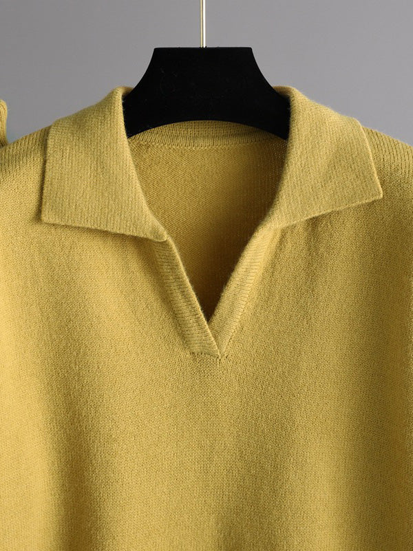 Urban Long Sleeves Solid Color Polo Sweater Tops & Wide Leg Pants Two Pieces Set