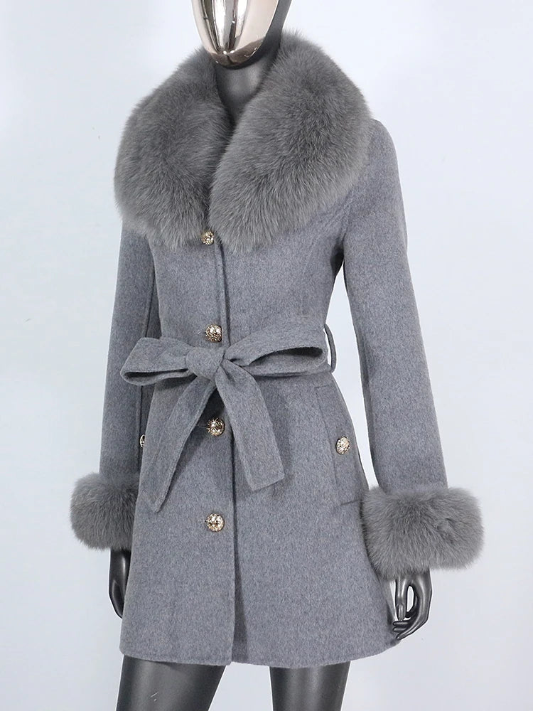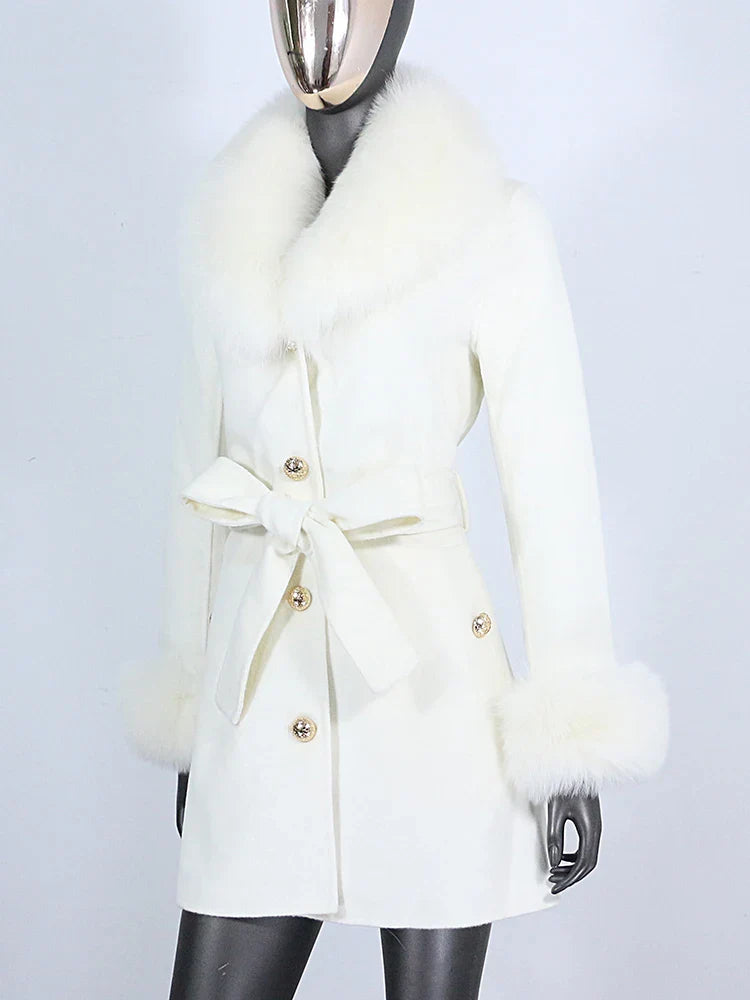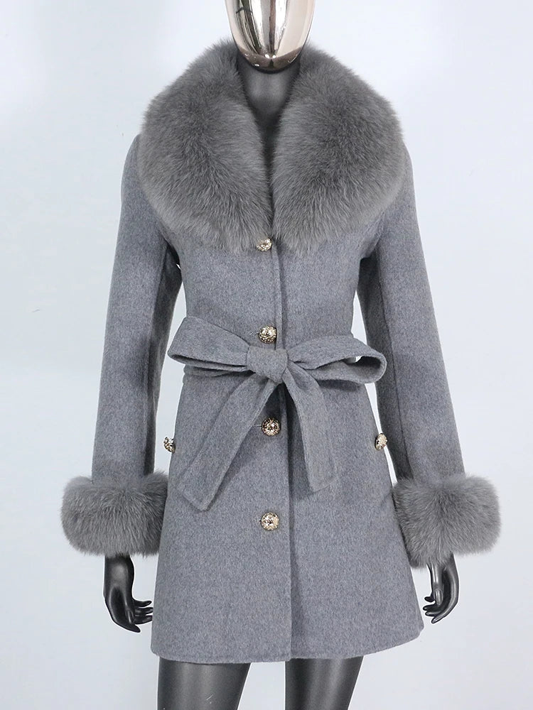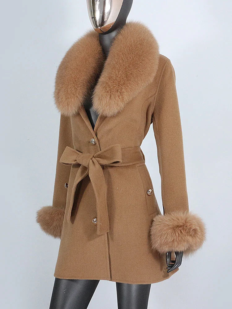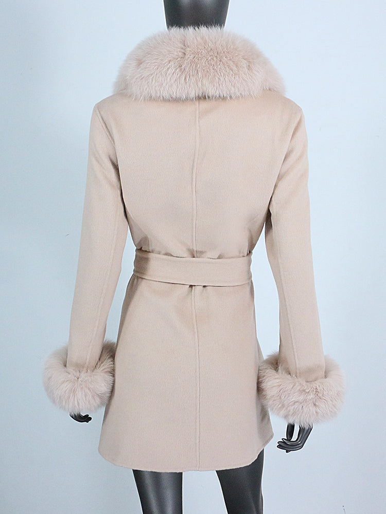 Women's Cashmere Wool Coat with Fox Fur Collar
