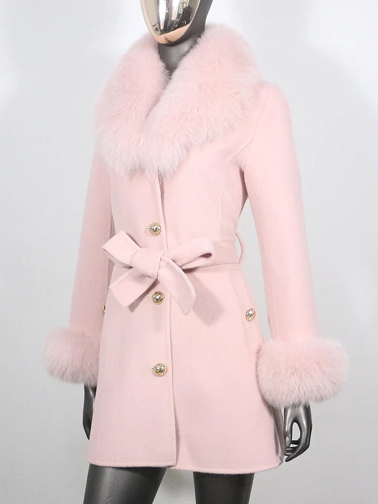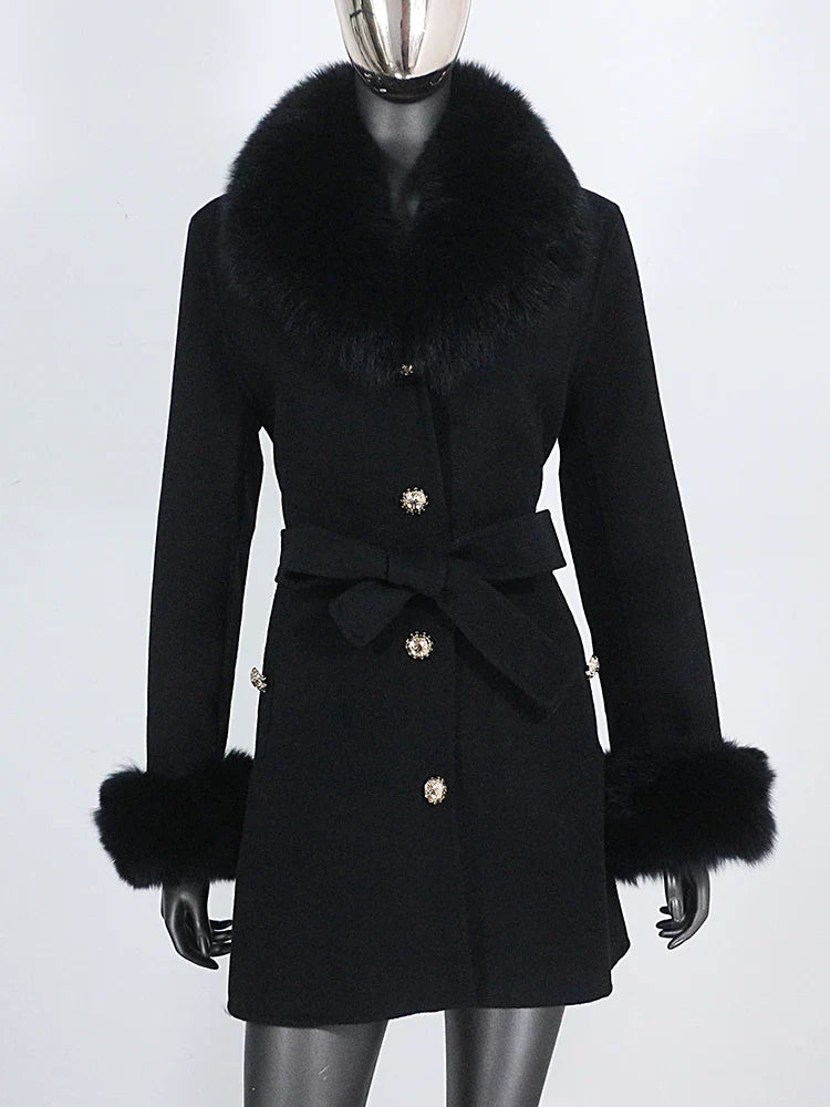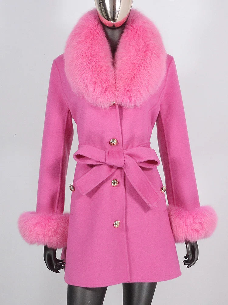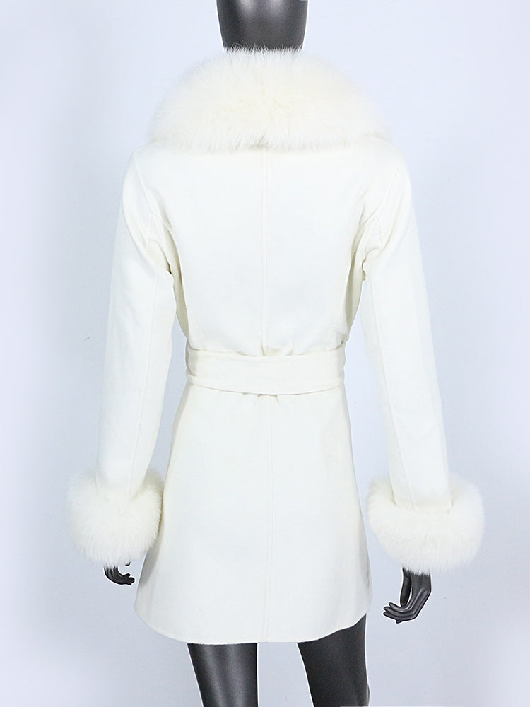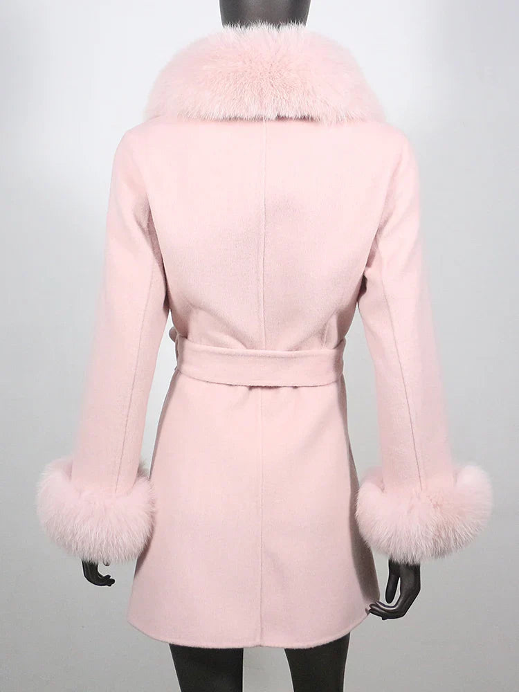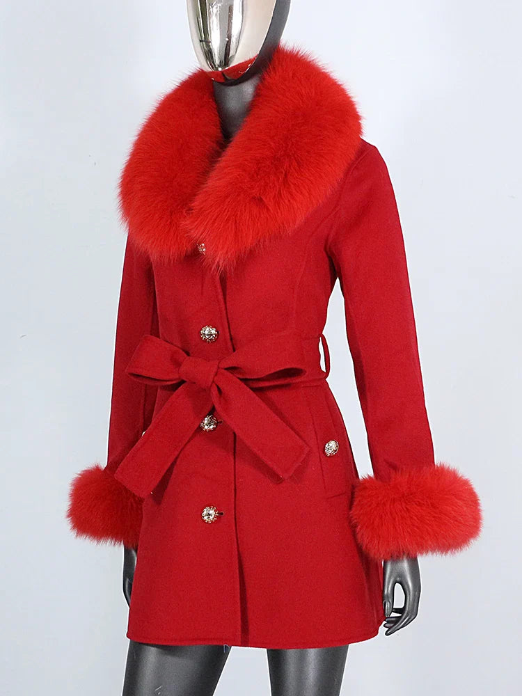 Women's Cashmere Wool Coat with Fox Fur Collar