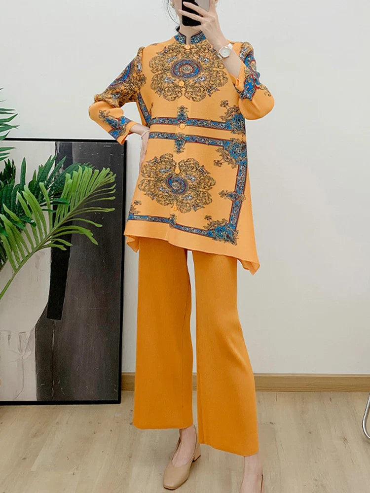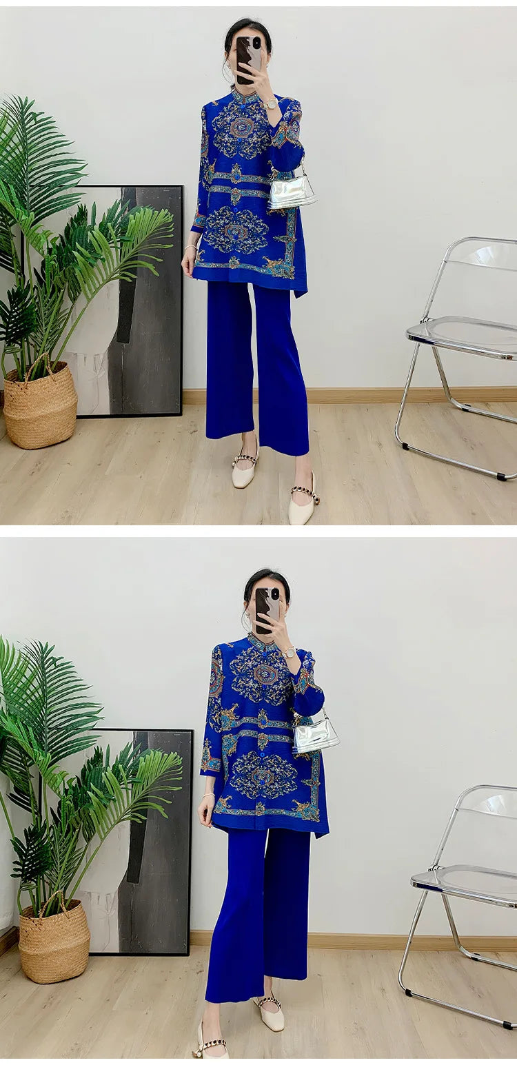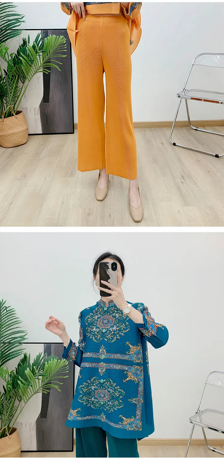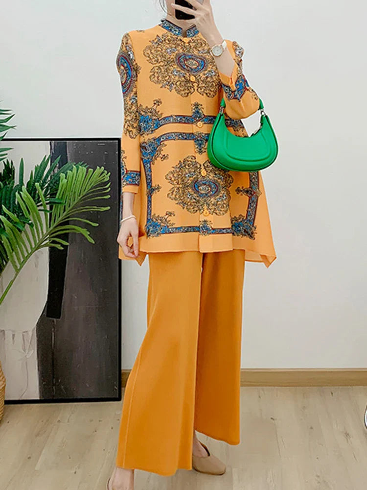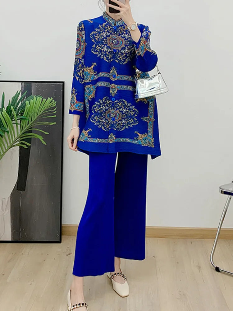 Women's Classy 2-Piece Pleated Trousers & Top Set