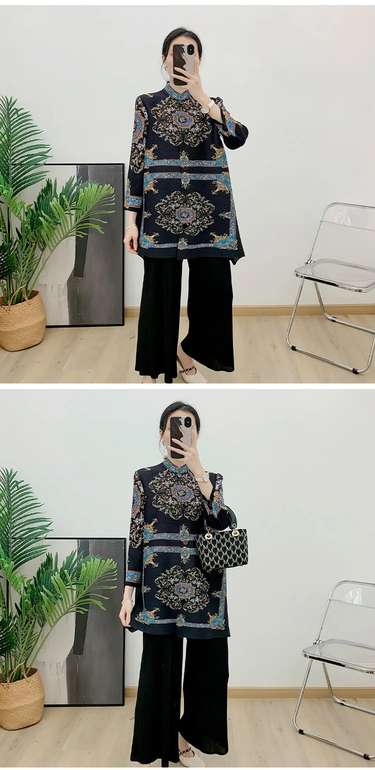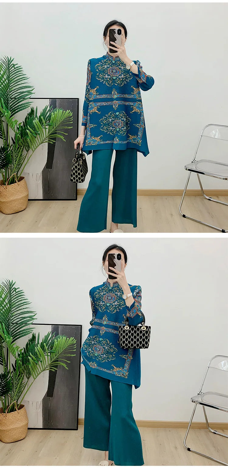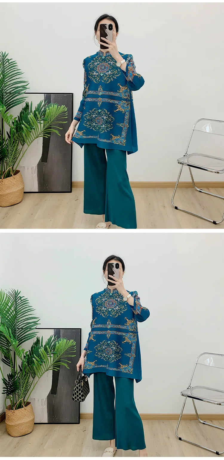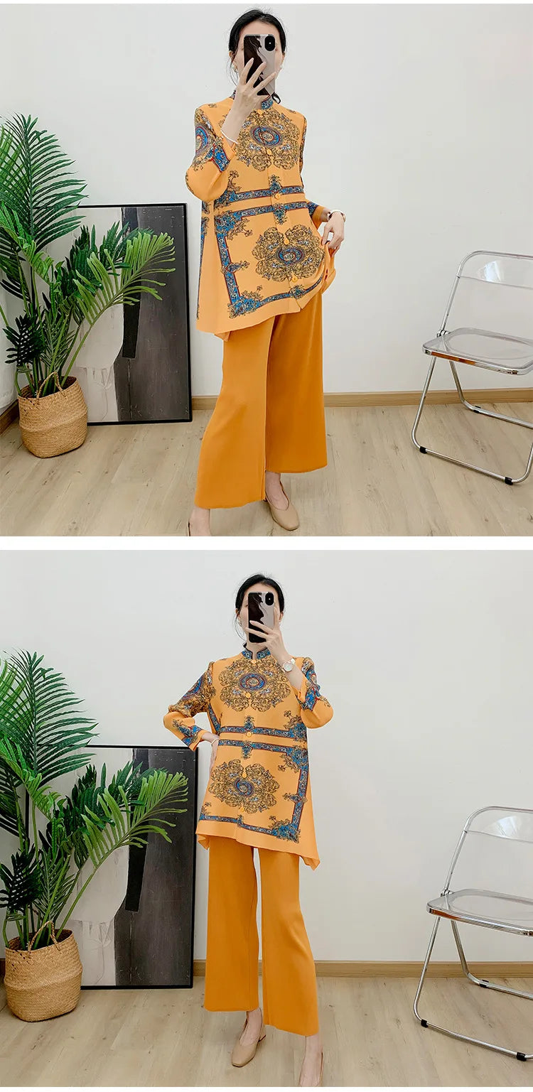 Women's Classy 2-Piece Pleated Trousers & Top Set